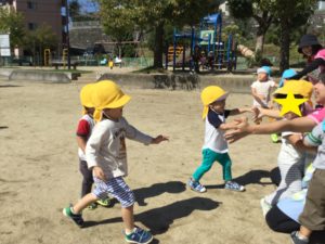 2018年9月28日 / 最終更新日時 : 2018年9月28日 Bambino バンビーノ Let`s Go~!! 今日はとっても良い天気~!ということで みんなで公園へ遊びに行きました 道中、虫の声や秋の風を感じながら 公園まで向かった子どもたち 公園では、遊具あそびを大満喫した後、 グラウンドで運動会に向けて「よ~い、ドン」 しっかりと先生の合図に合わせて、 遠くで両手を広げて待ち構える先生の元へと 元気いっぱい走る子どもたちでした コメントを残す コメントをキャンセルメールアドレスが公開されることはありません。 * が付いている欄は必須項目ですコメント * 名前 * メール * サイト 上に表示された文字を入力してください。