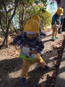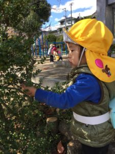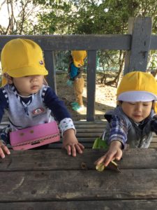 2018年11月15日 / 最終更新日時 : 2018年11月15日 Bambino バンビーノ 「見てみて~♪」 今日も公園で秋探し それぞれ自分のお出かけバックの中へと 拾った落ち葉や木の実を入れていく子どもたち たくさん集めた後は・・・ テーブルの上に並べてみんなでごっこあそび 葉っぱの上に木の実を置いて 「どうぞ~」と楽しそうでした コメントを残す コメントをキャンセルメールアドレスが公開されることはありません。 * が付いている欄は必須項目ですコメント * 名前 * メール * サイト 上に表示された文字を入力してください。