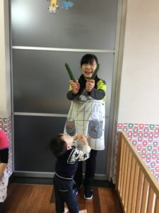 2018年11月29日 / 最終更新日時 : 2018年11月29日 Bambino バンビーノ 1と1で2~!! 朝のお集りの時間 『むらかみさーん』 子どもたちが呼ぶと、調理師の村上さん登場して、 今日のお野菜は何かな 『きゅうり』 『みどり』 『1と1で2~』(1本と1本で2本) 質問より先に子どもたちから次々に答えが飛び交います たんぽぽ組さんも興味深々です 木の実や落ち葉を集めて、 まだまだ秋を満喫中です コメントを残す コメントをキャンセルメールアドレスが公開されることはありません。 * が付いている欄は必須項目ですコメント * 名前 * メール * サイト 上に表示された文字を入力してください。