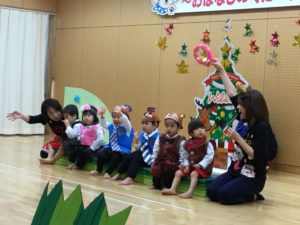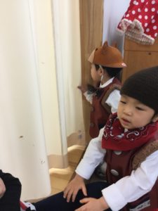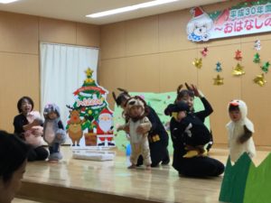 控室では絵本を読んだり、カーテンの隙間から会の様子をのぞいたりして、