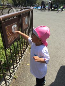 いつも図鑑や絵本で見ている動物たちが間近で見える事もあって、興味津々の子どもたち![]()
