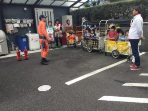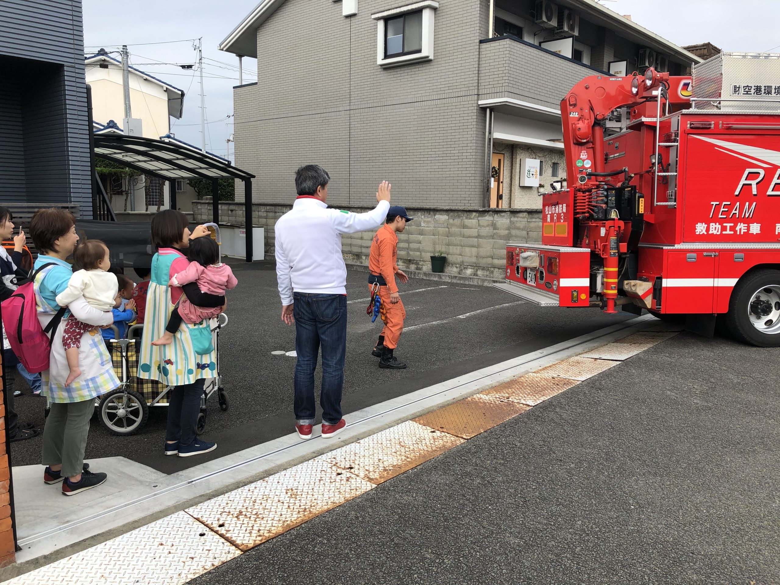 今日は年に1回、消防署の方に来所していただき、実際の訓練の様子を見ていただく日👀