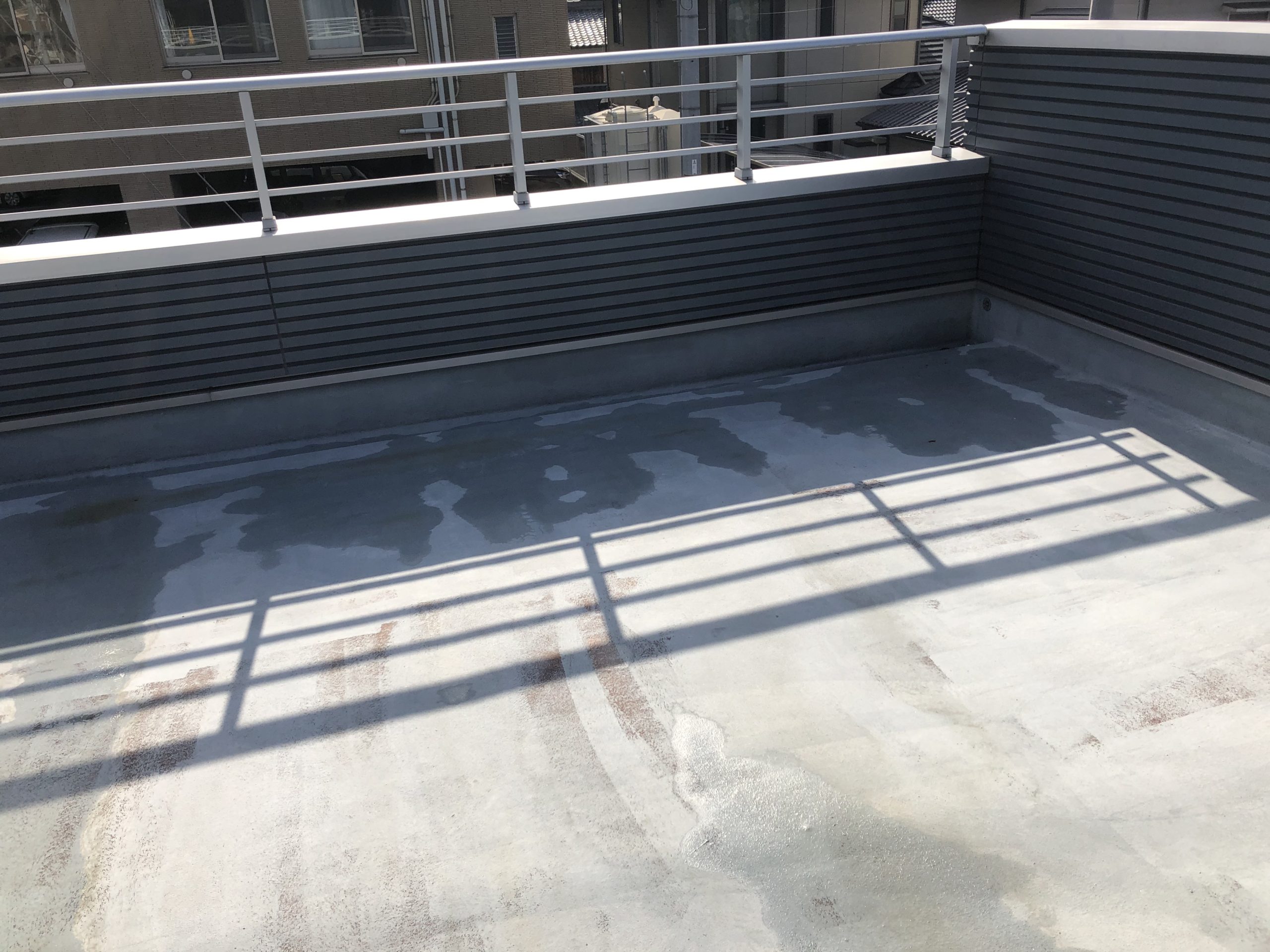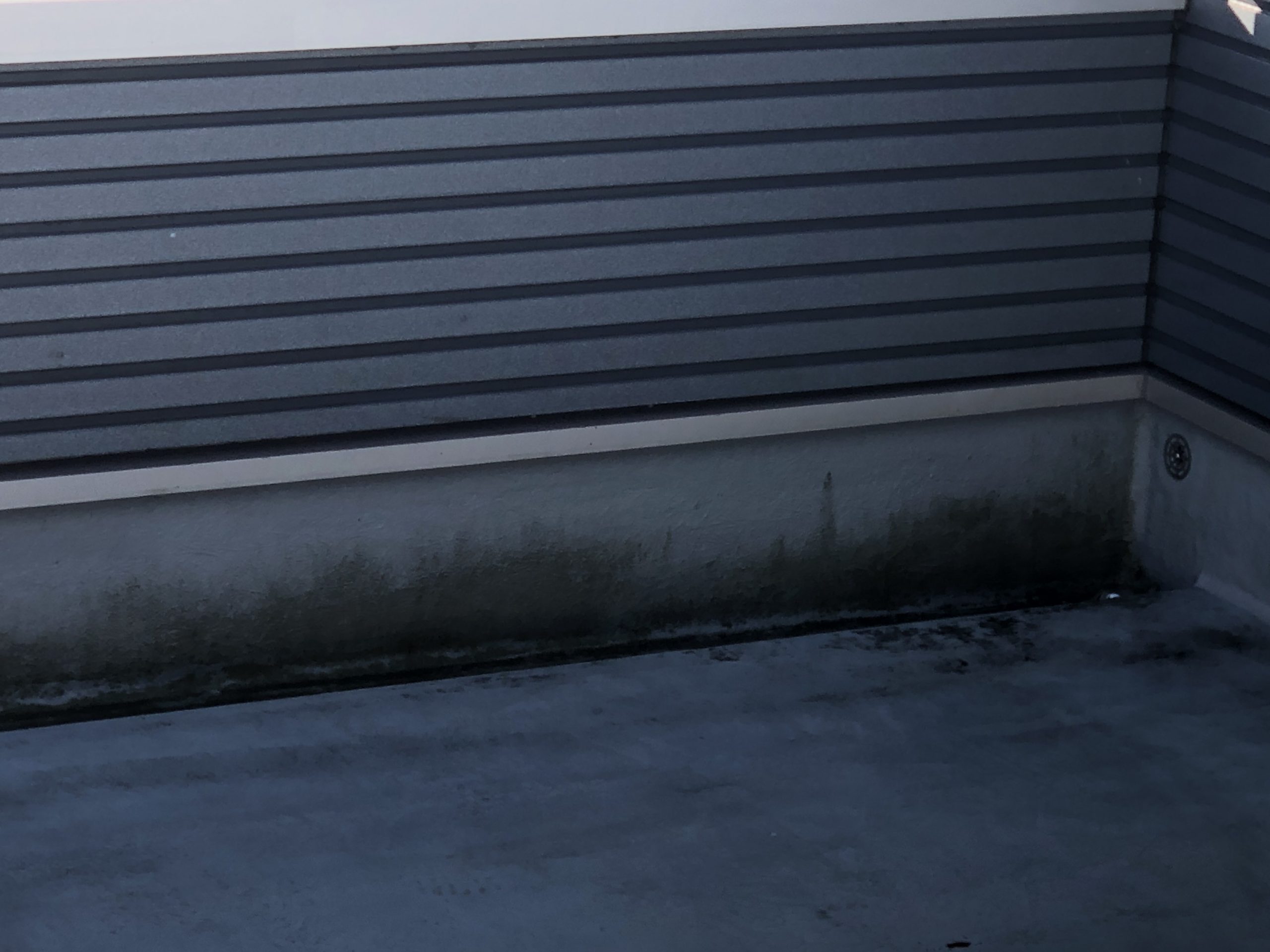 2階バルコニーの壁は、苔のようなガンコな汚れがびっしり