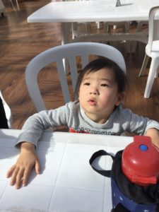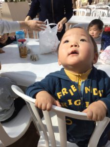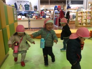 立ち乗りのお散歩カーデビューのお友だちも、周りをキョロキョロ![]()
