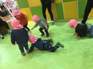 4Fのキッズスペースで、床に写る魚🐟などのCGを追いかけ、