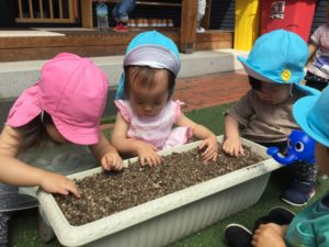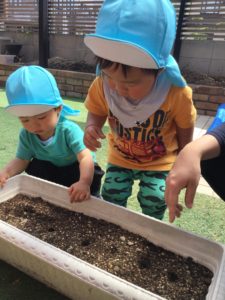 2020年5月12日 / 最終更新日時 : 2020年5月12日 Bambino バンビーノ この種、なんの種~?? 今日もいいお天気でしたね みんながお手てを広げて受け取っているのは… ひ○り○🌻の種!! 何回も経験してきたので、種を蒔くのもお手の物?! みんな真剣な表情で植えていました🌱 さすがです お家で何の種を植えたか、子どもたちに聞いてみて下さいね 入園したばかりの、たんぽぽ組さんも興味津々でした (安心して下さい!人工芝なので、裸足でも大丈夫です♪) 成長をお楽しみに~🌻 コメントを残す コメントをキャンセルメールアドレスが公開されることはありません。 * が付いている欄は必須項目ですコメント * 名前 * メール * サイト 上に表示された文字を入力してください。