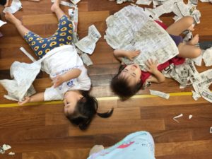 新聞紙のお布団![]()