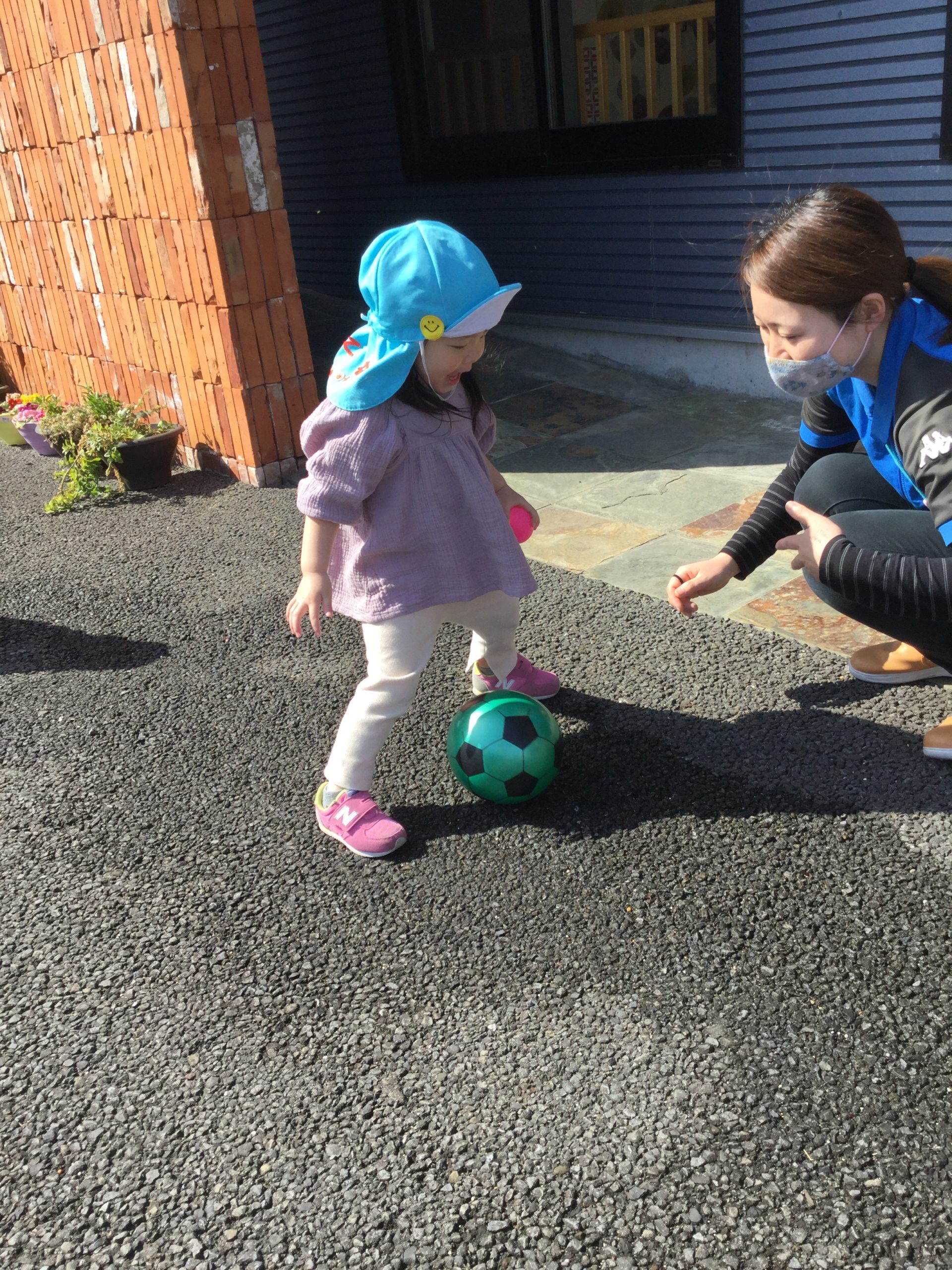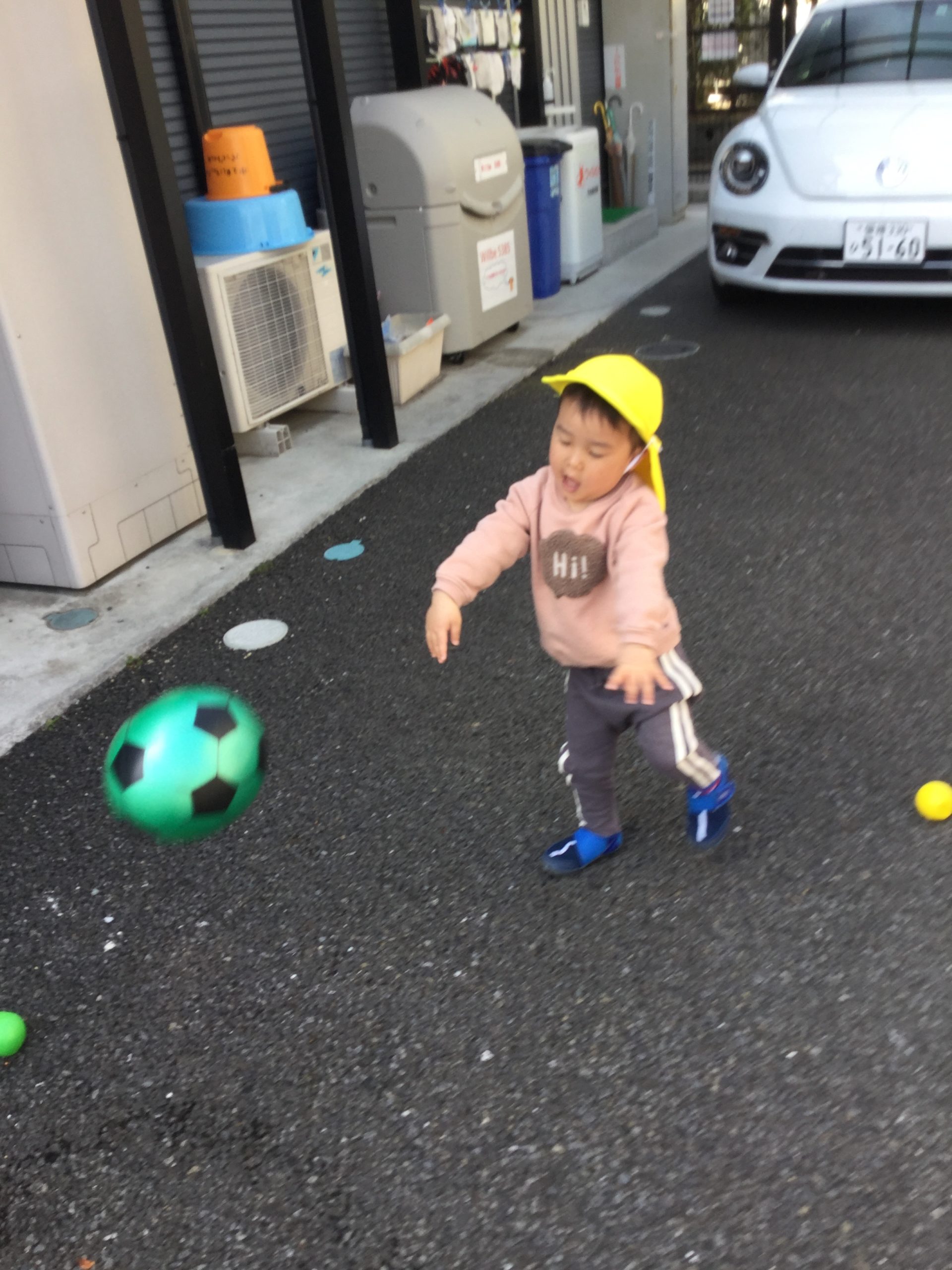 天気のいい日は、なるべく園庭や駐車場などで身体を動かすようにしています⚽