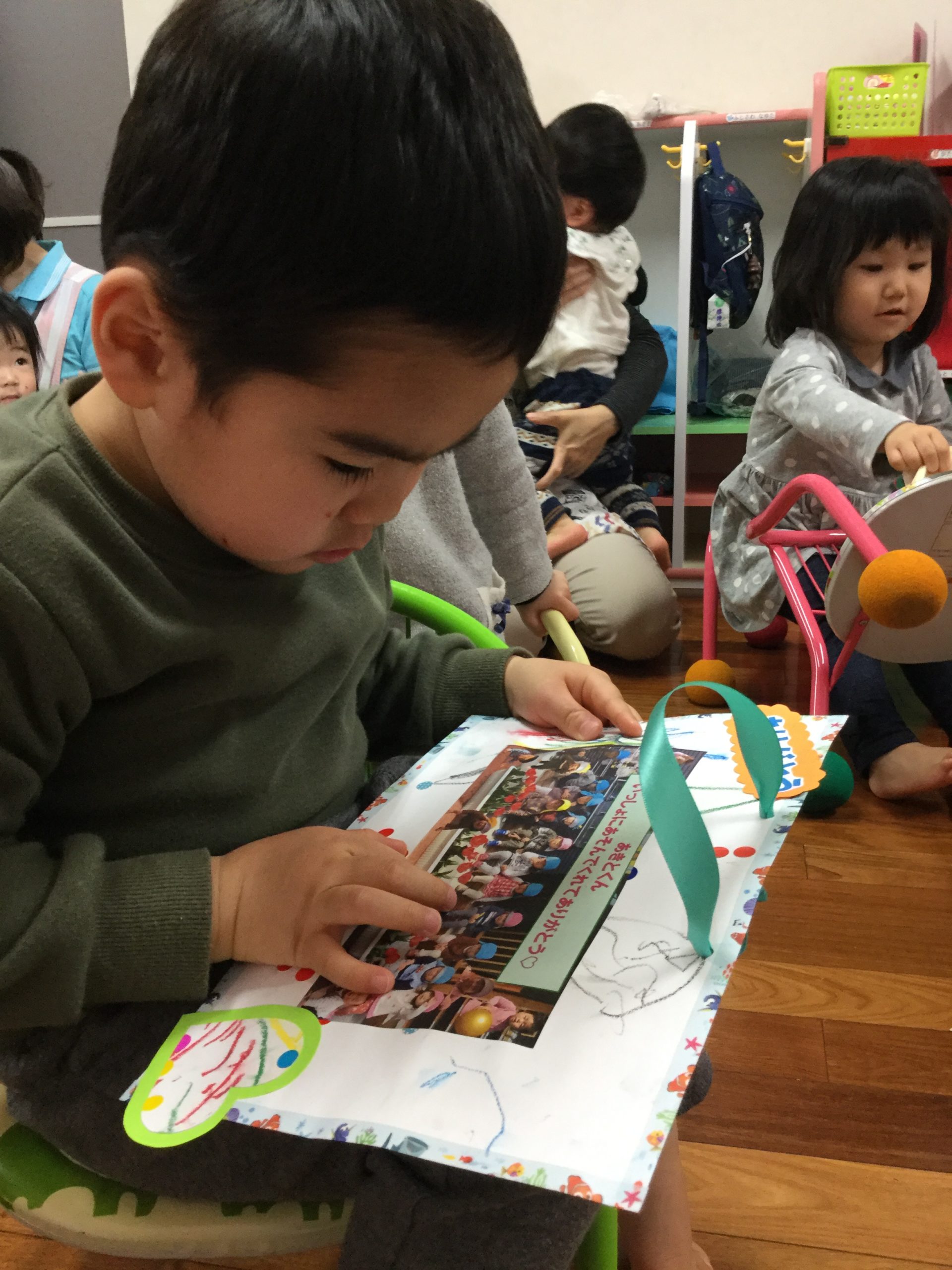 諒も生後半年からスタートした保育園生活も後わずかになりました。新しい生活、頑張ってください。