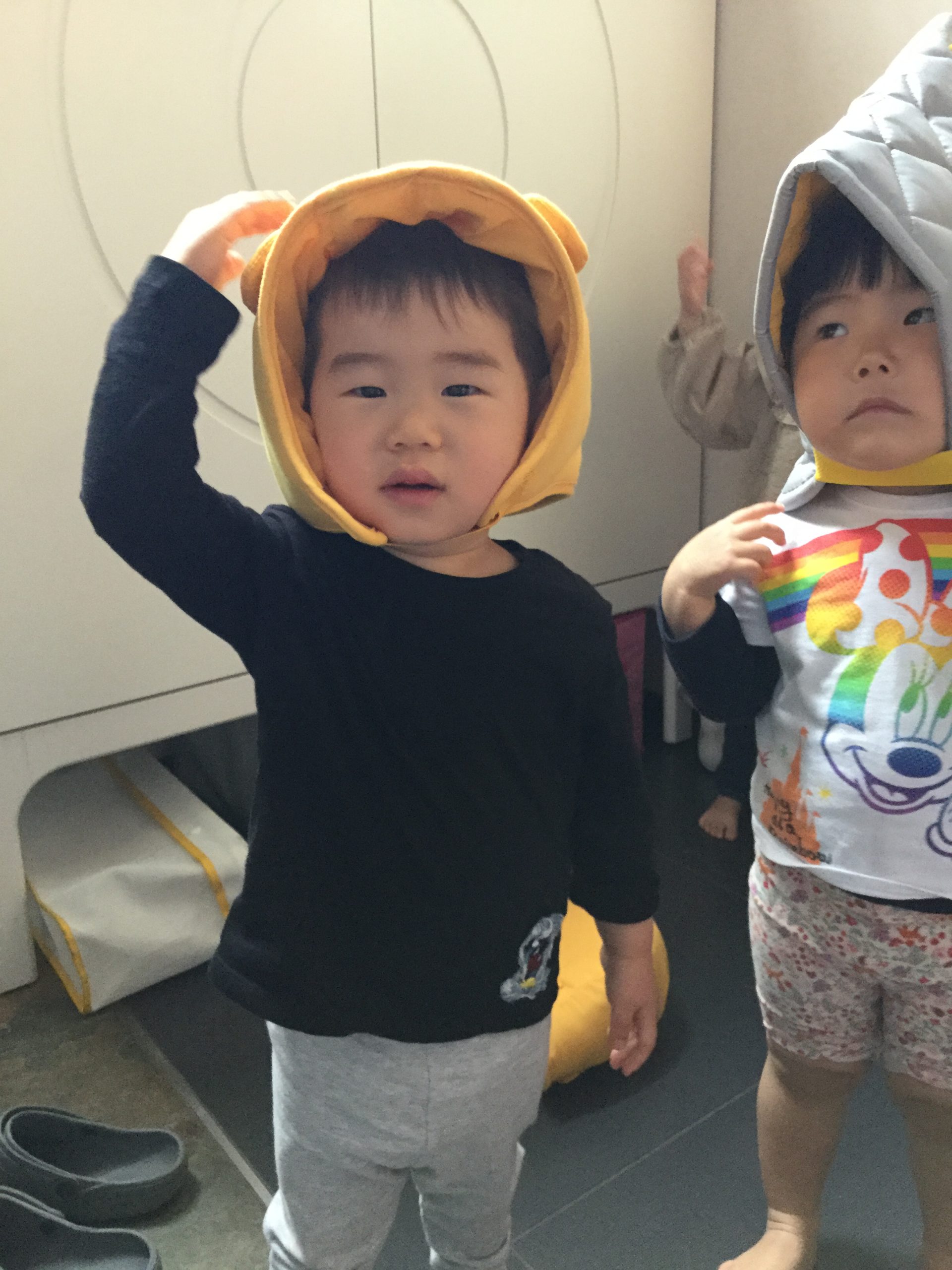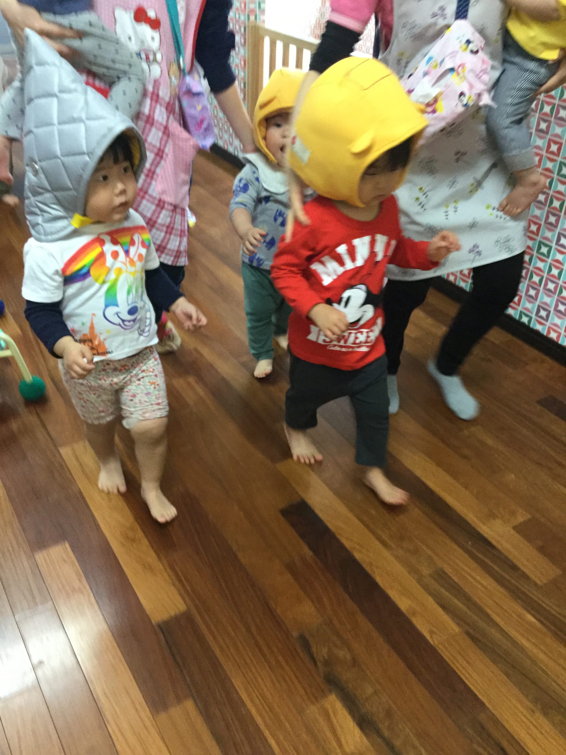 午前中は天気が良くなかったので、室内で身体を動かして遊びました![]()