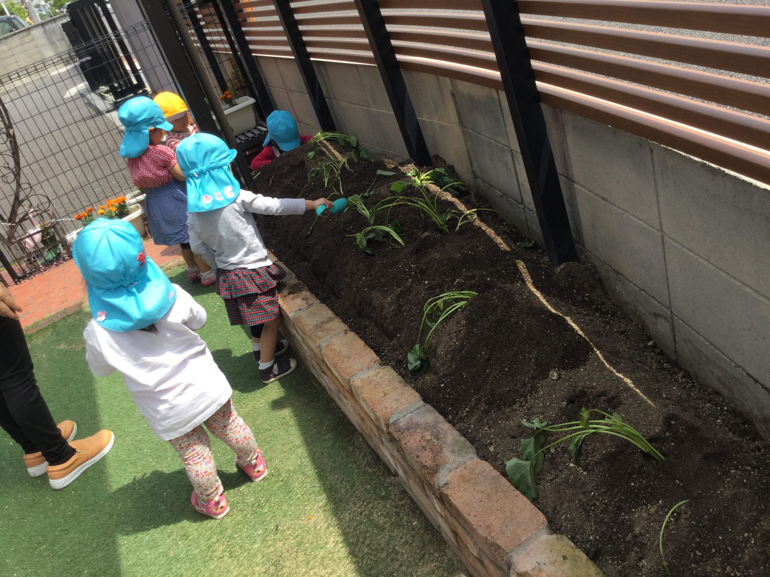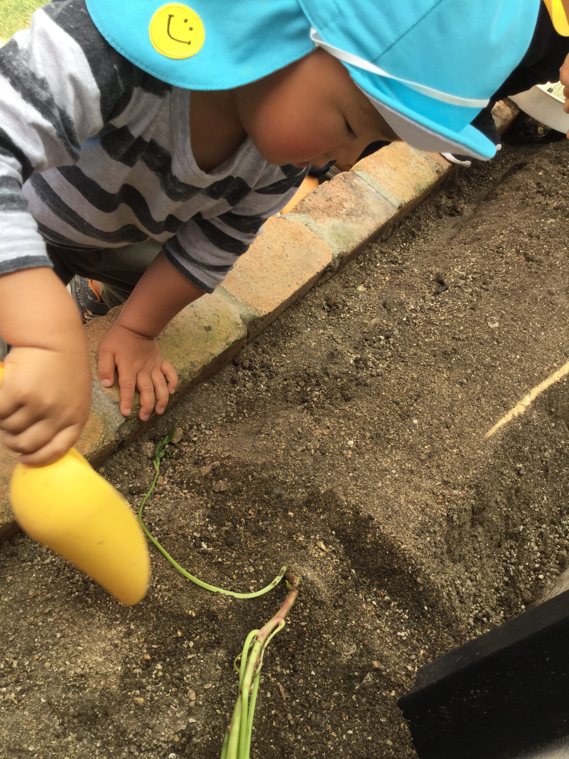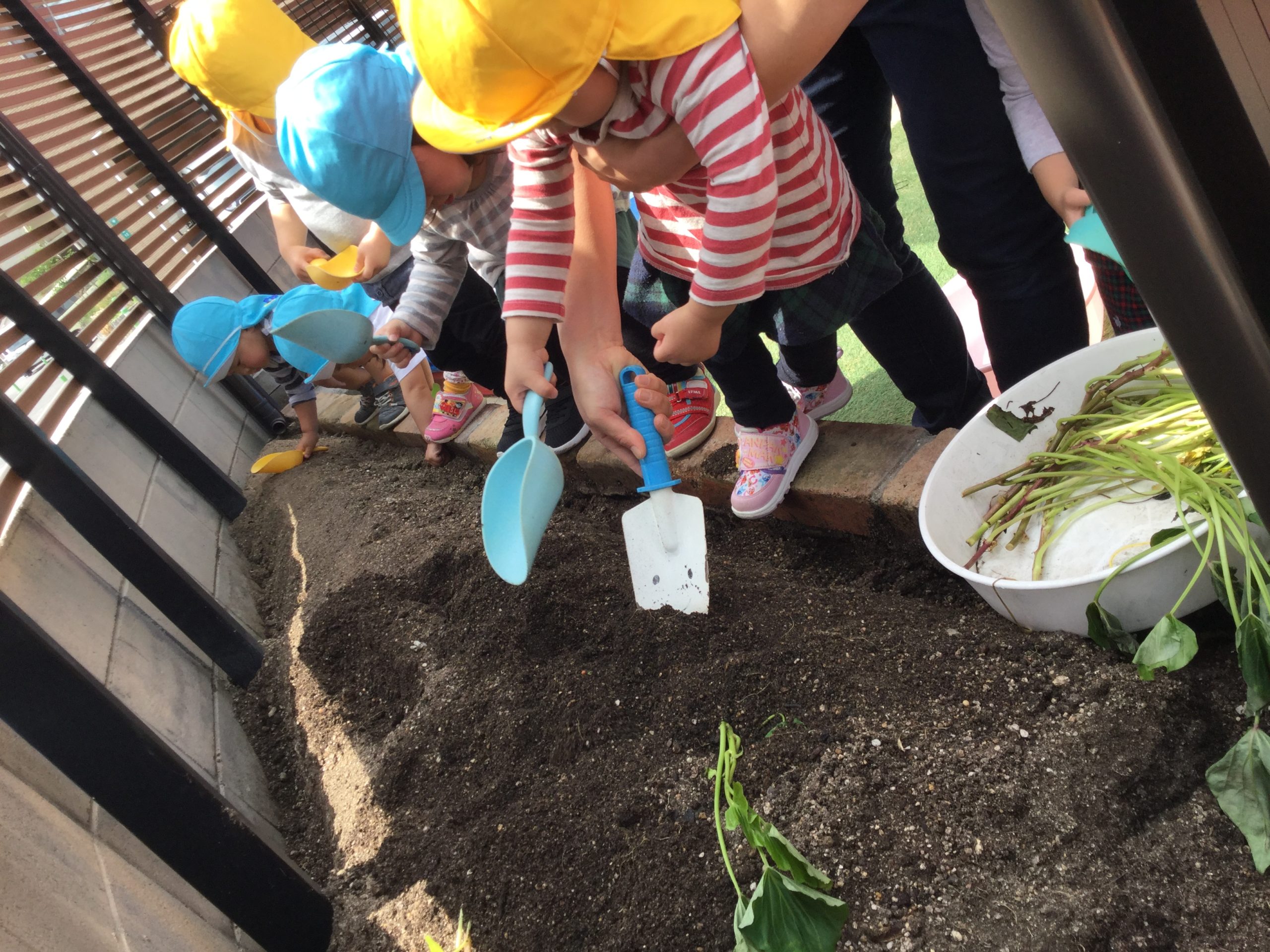 先生と一緒に一生懸命土を掘り、無事植え終わりました![]()