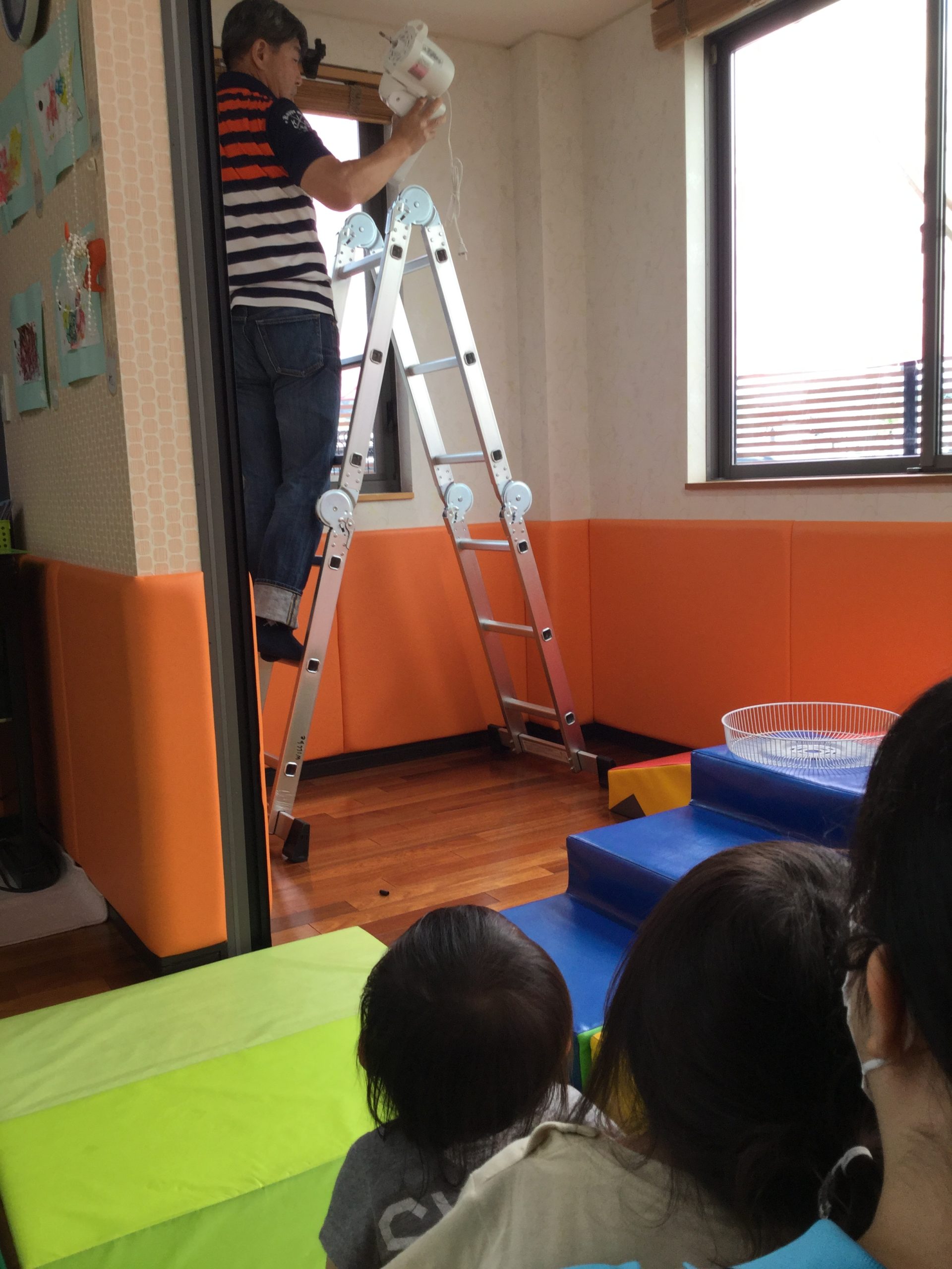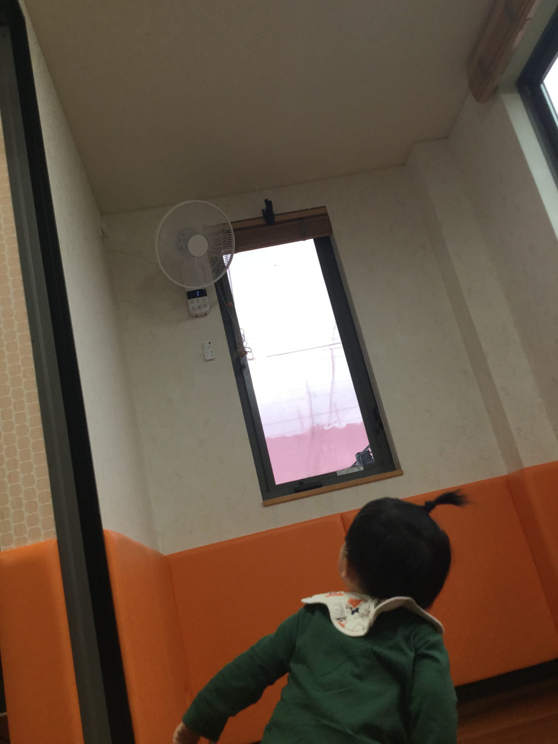 蒸し暑くなったので、保育室とお昼寝ROOMに扇風機を設置しました。