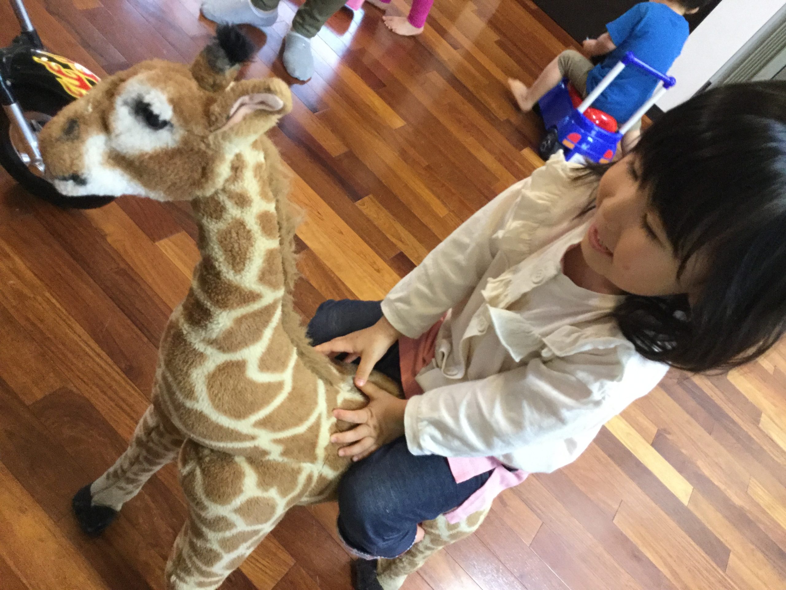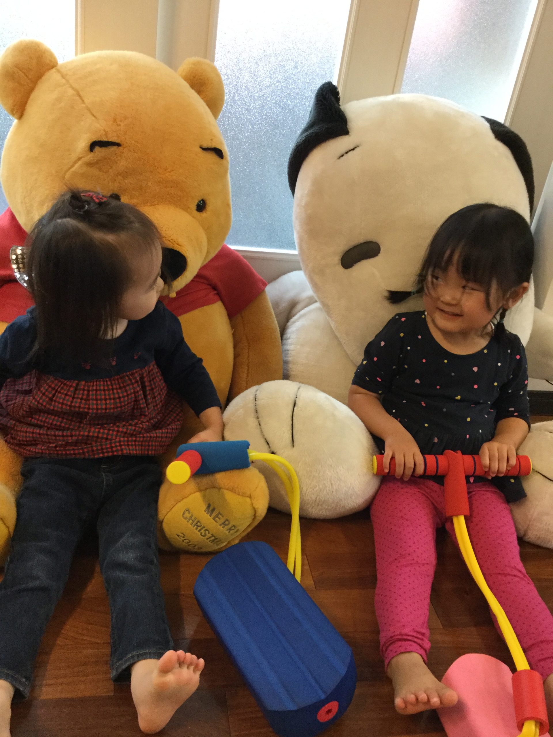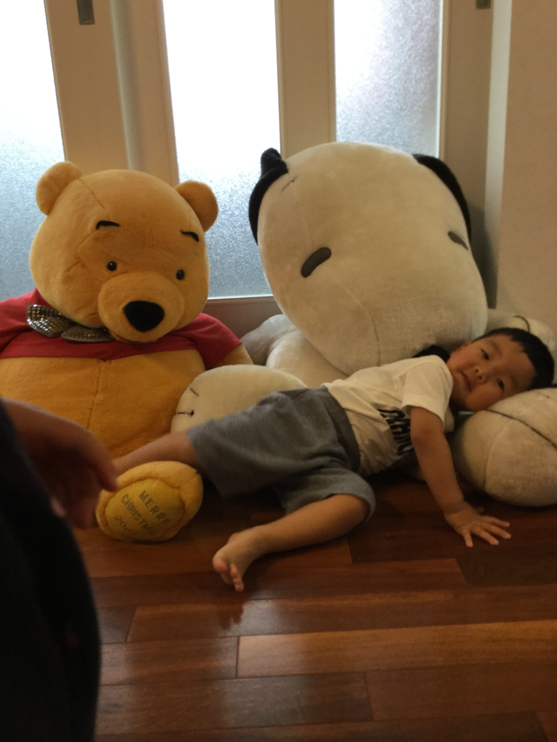 「ぬいぐるみが自分より大きいなんて、今だけよね~。」(笑)