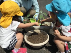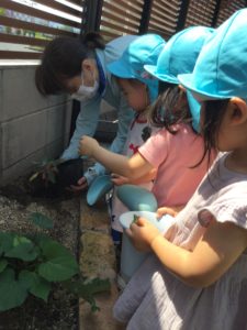 まゆみ先生がひまわりの苗を持ってきてくれました![]()