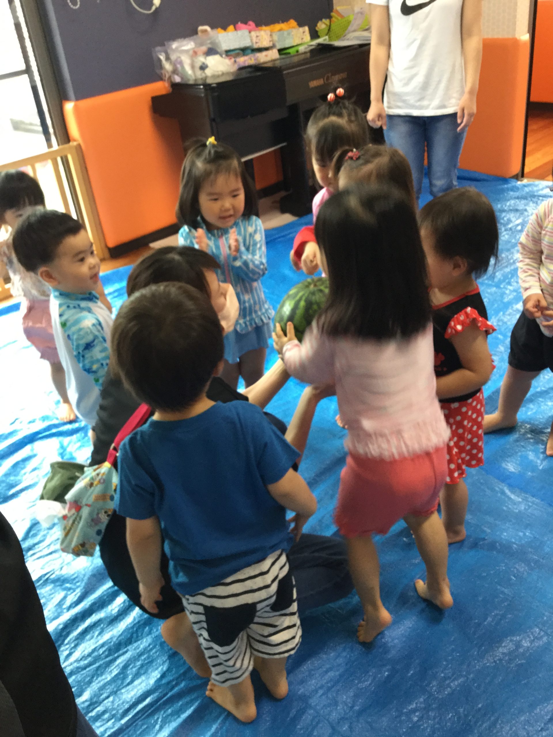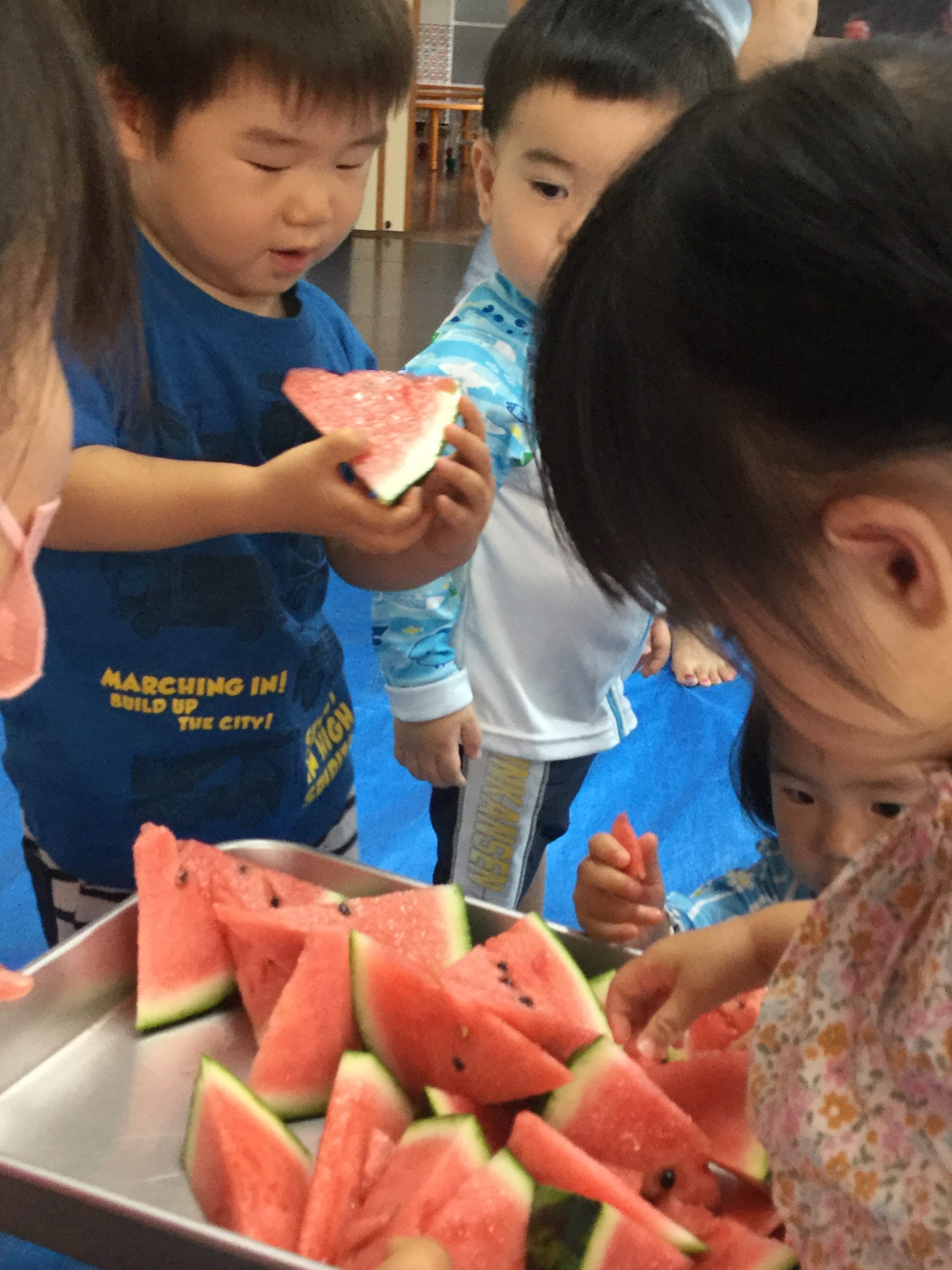 スイカとご対面!大はしゃぎのバンビっ子たち![]()