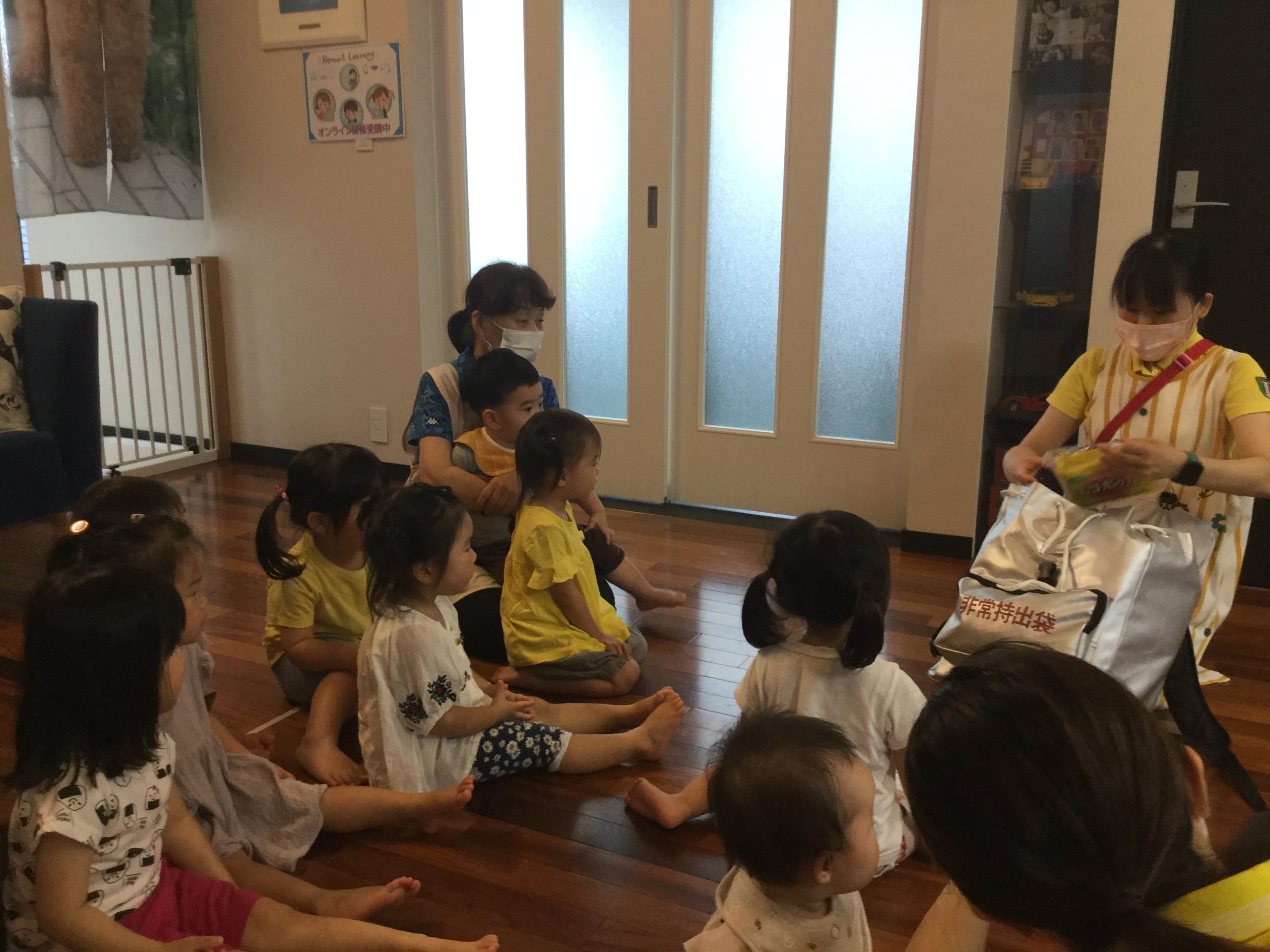 まりか先生から、災害のとき持ち出すバッグの中身の説明がありました🎒