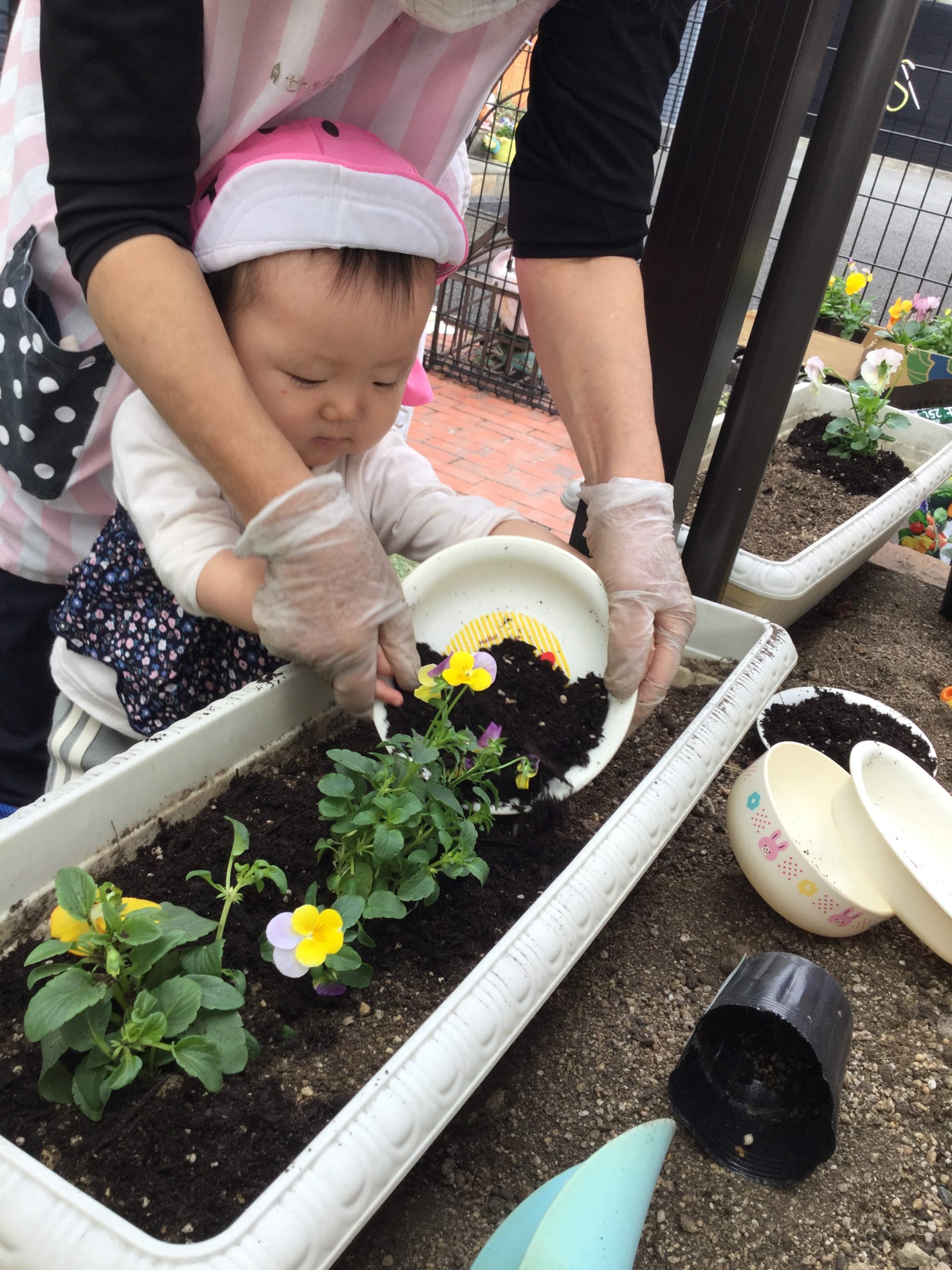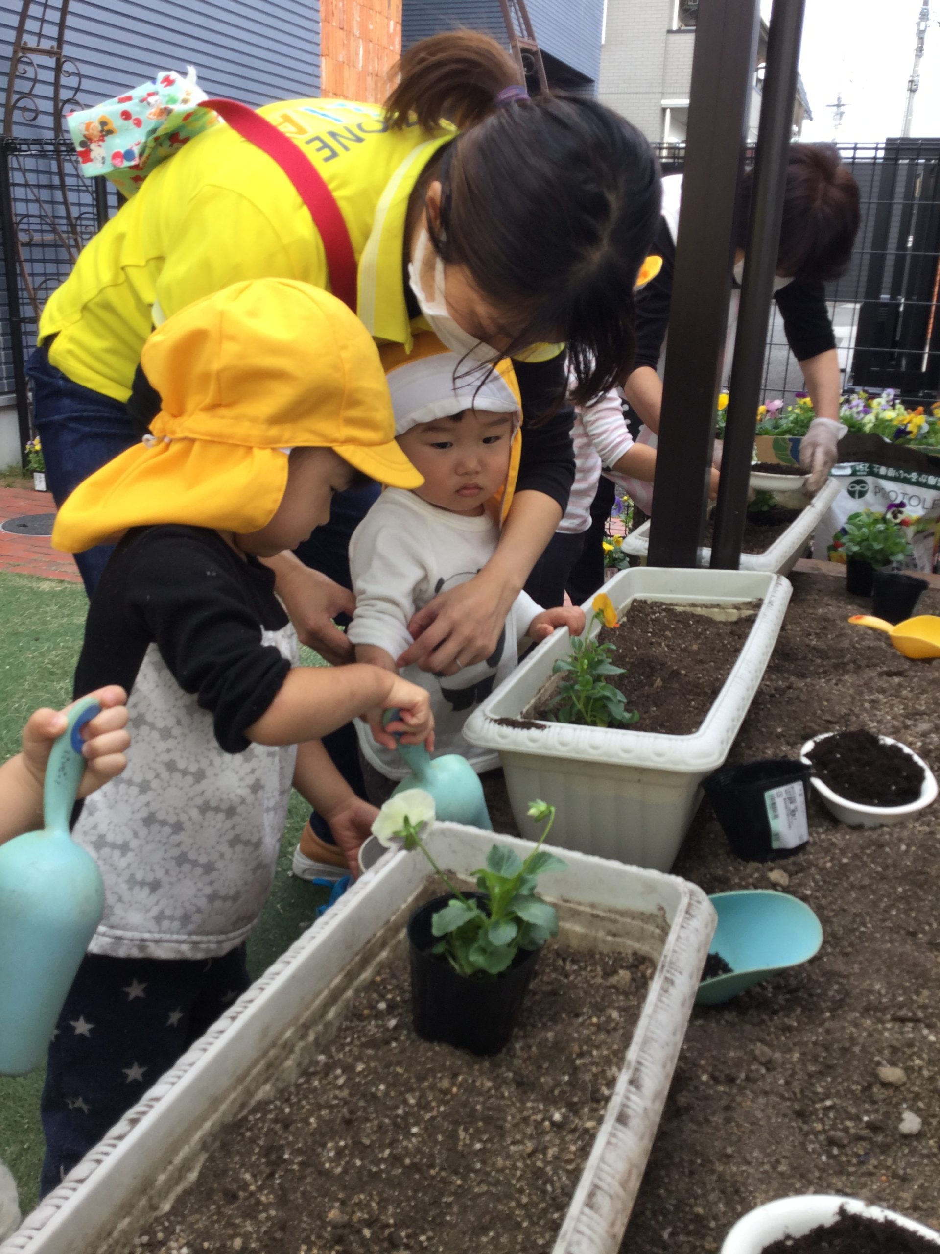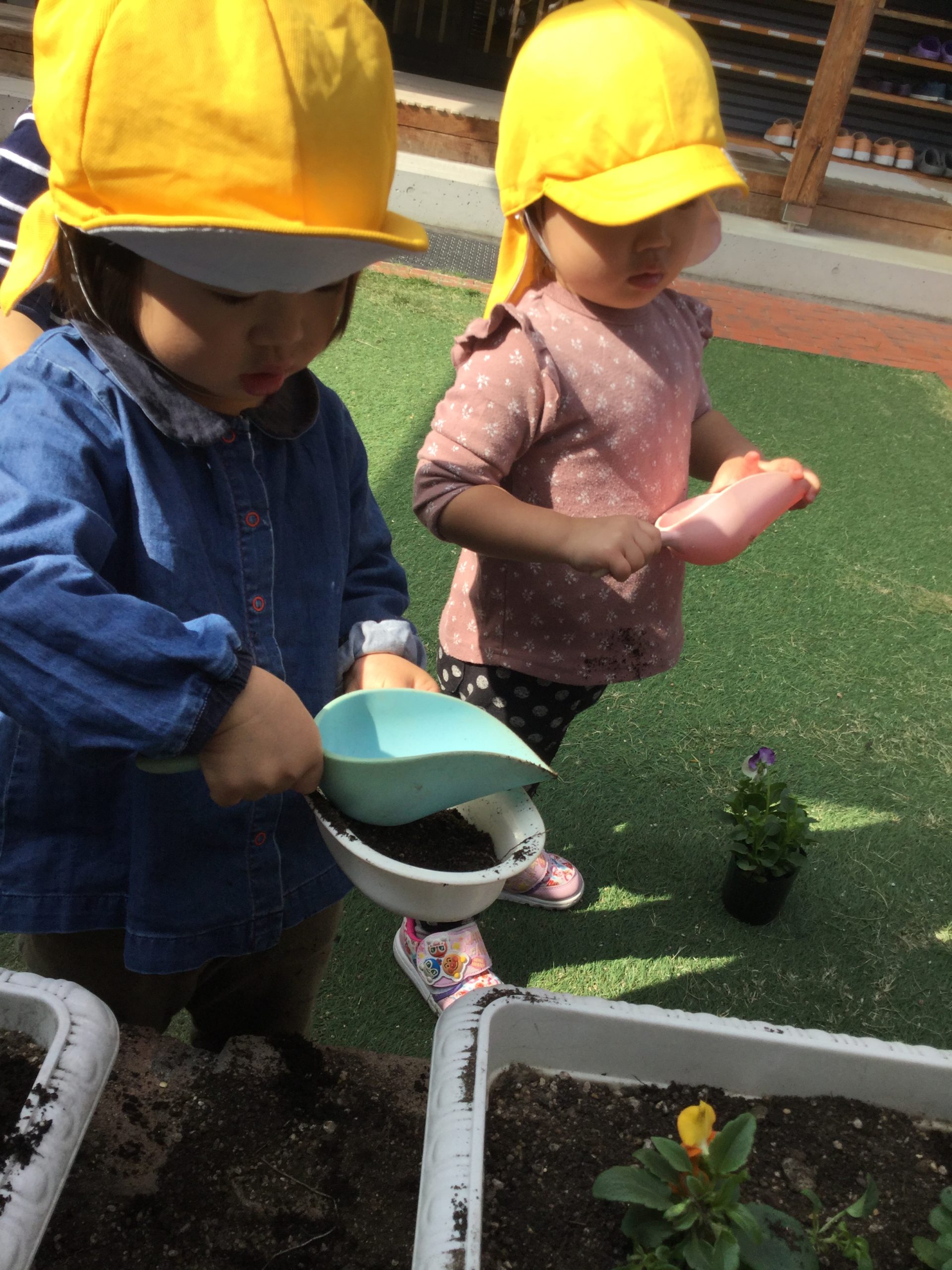 今日はパンジーより小ぶりの「ビオラ」も仲間入り😀