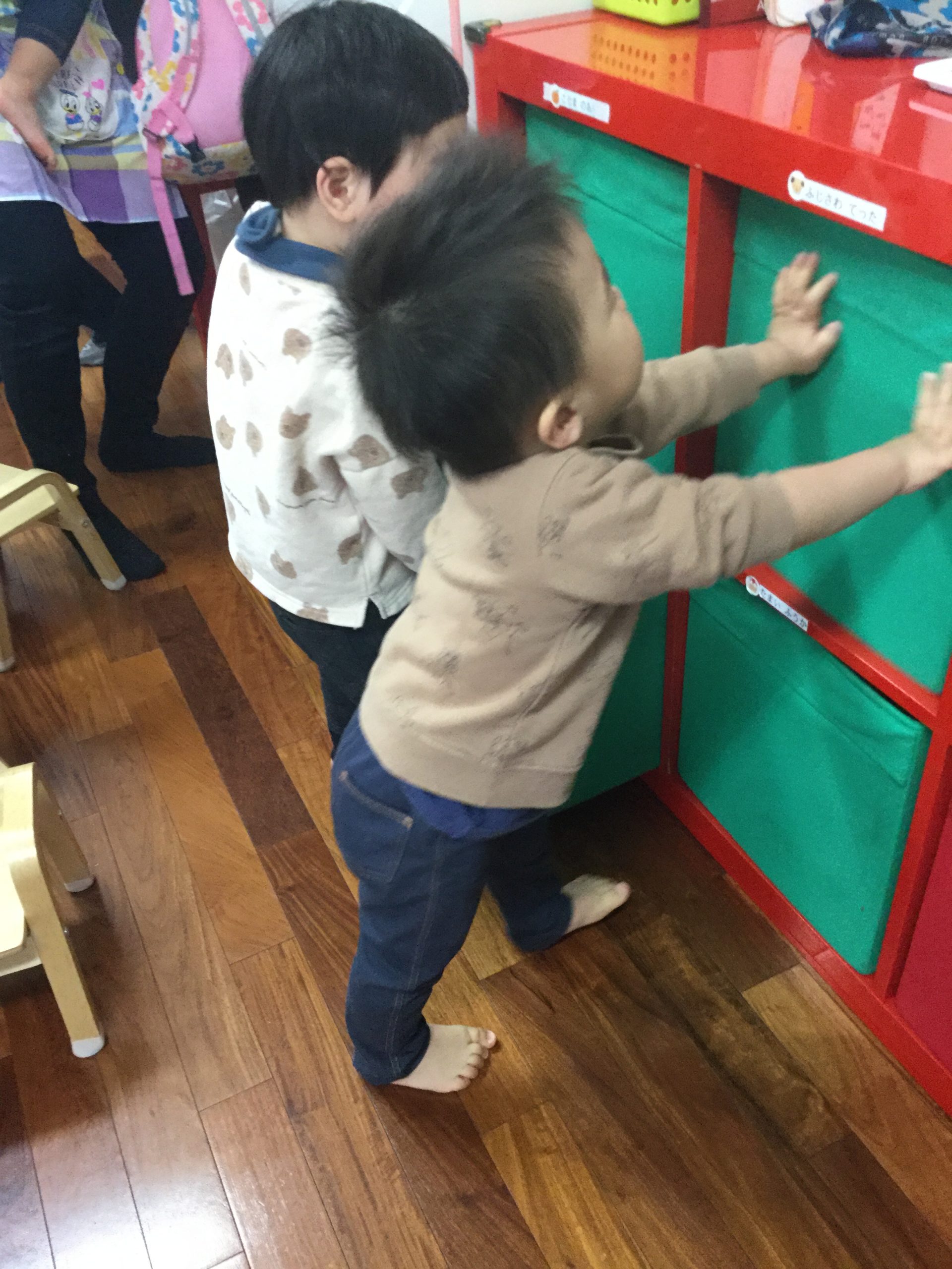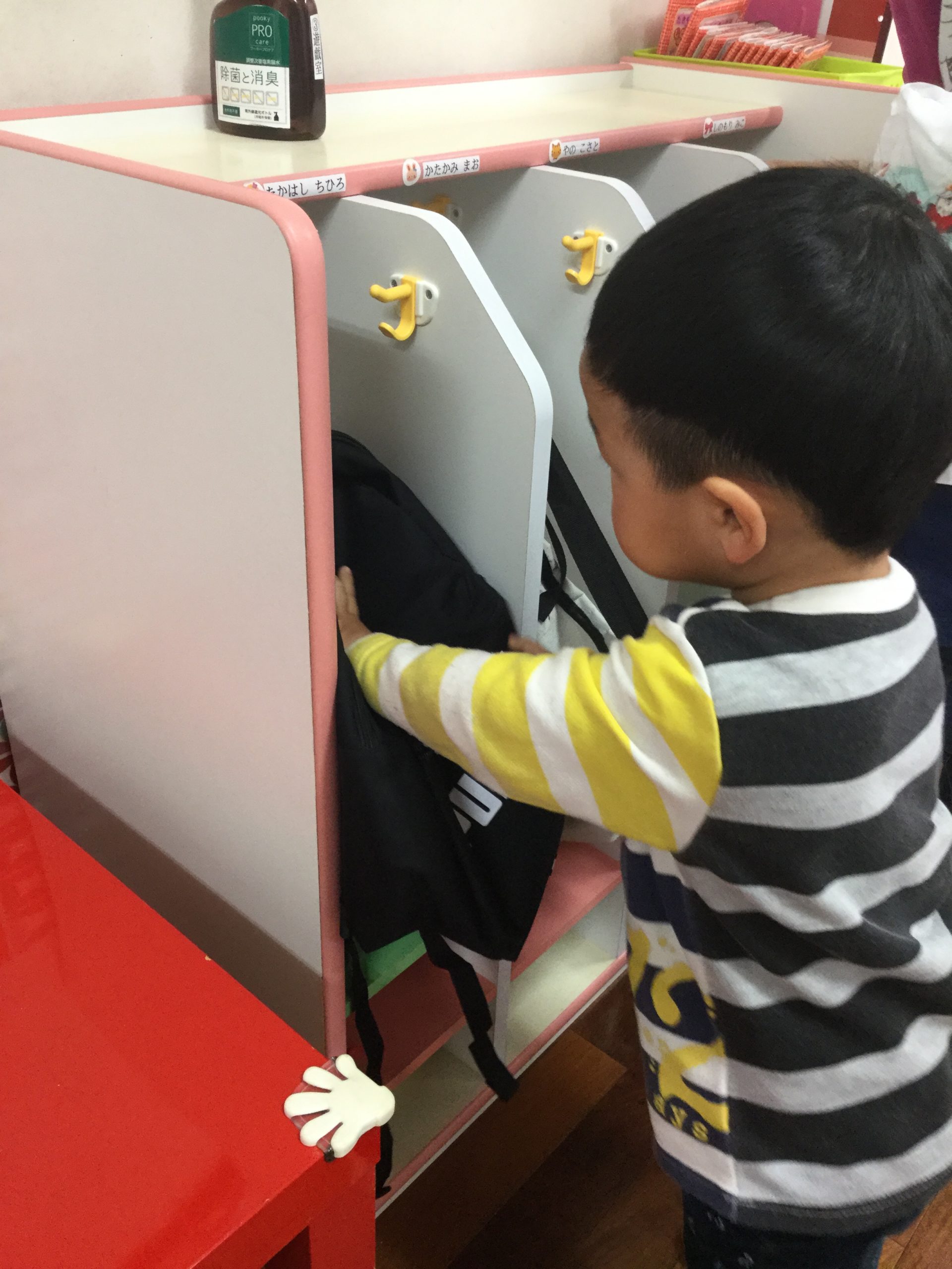 自分のカバンをしまうひまわり組さん🤩