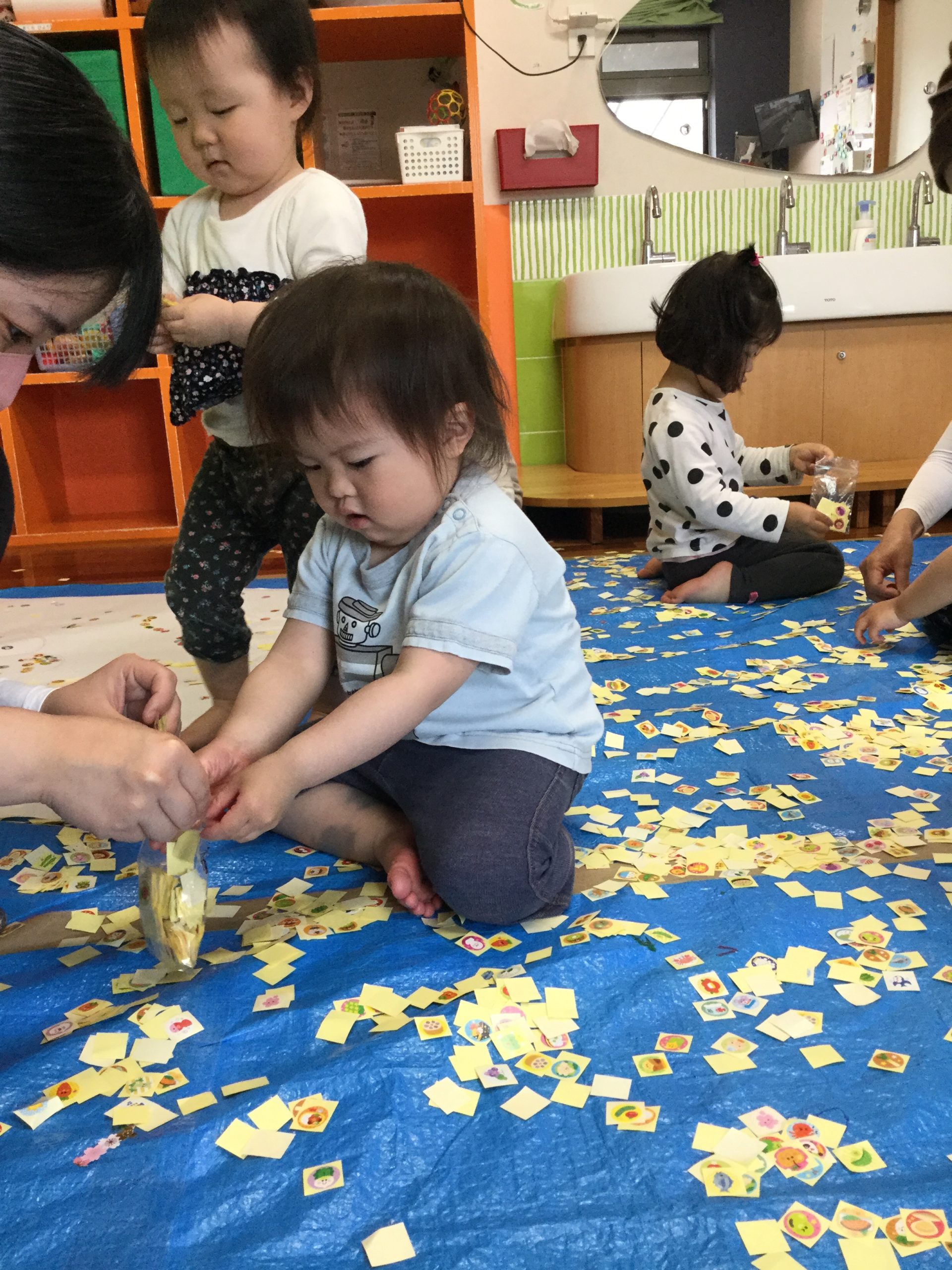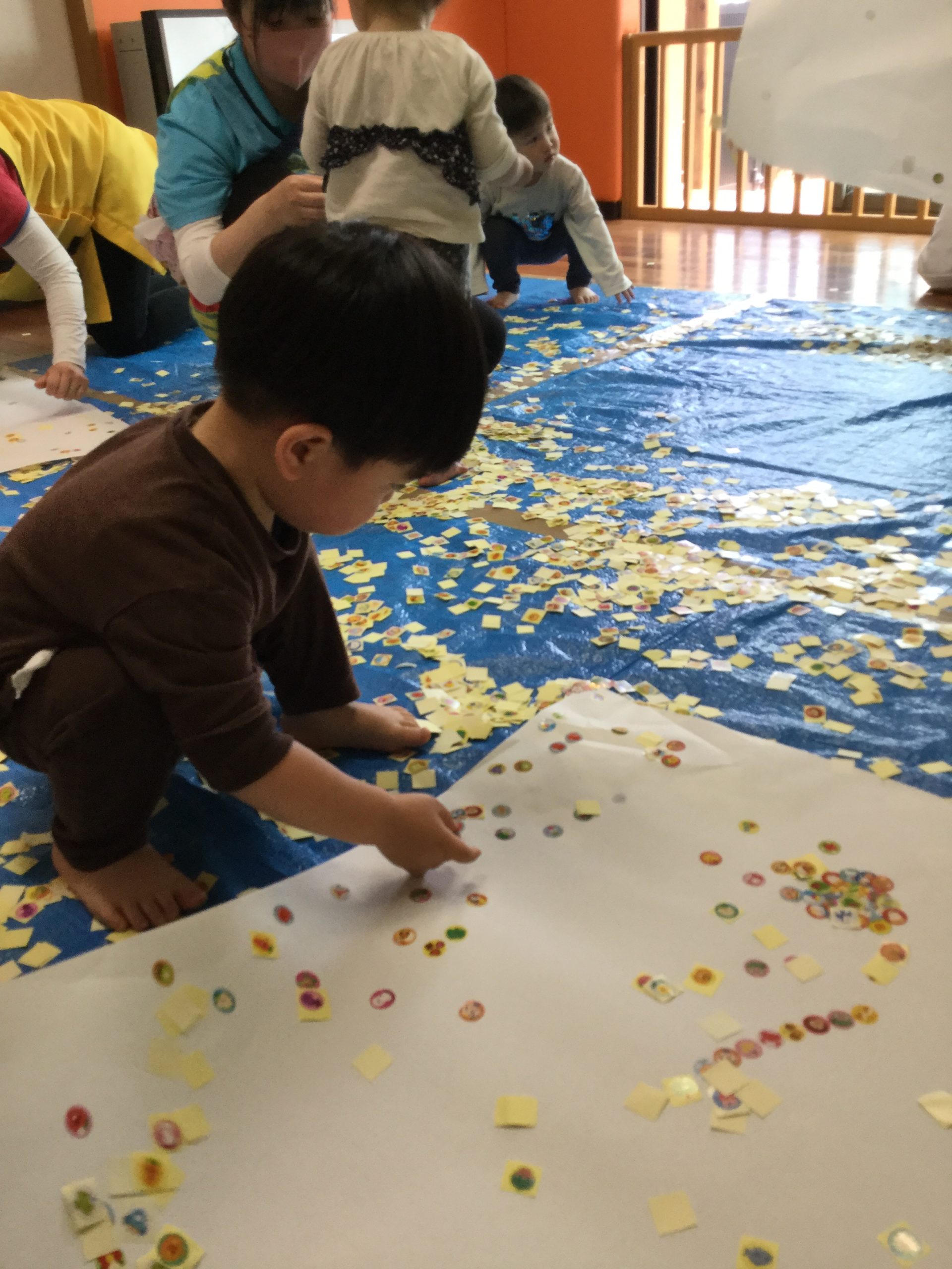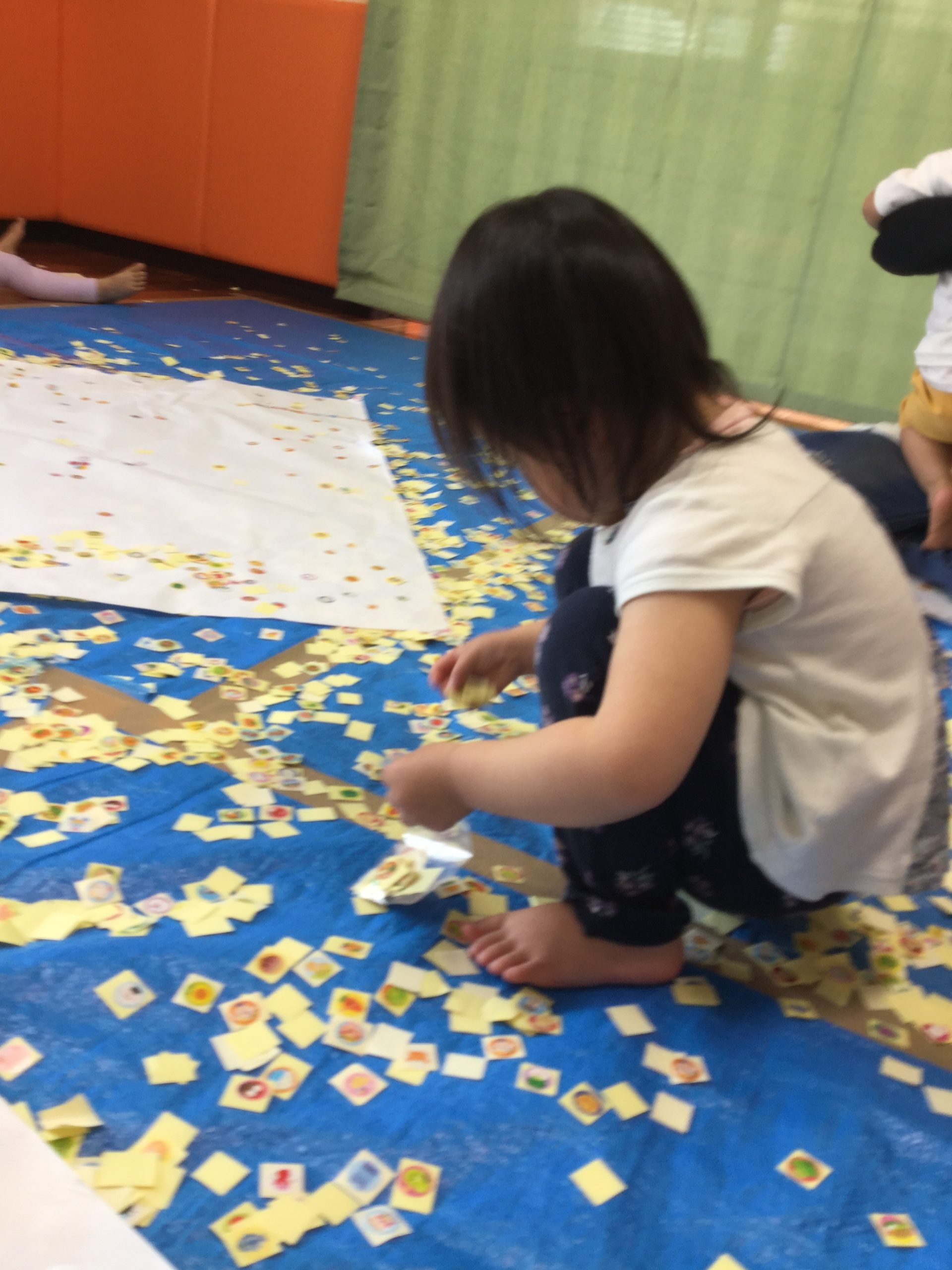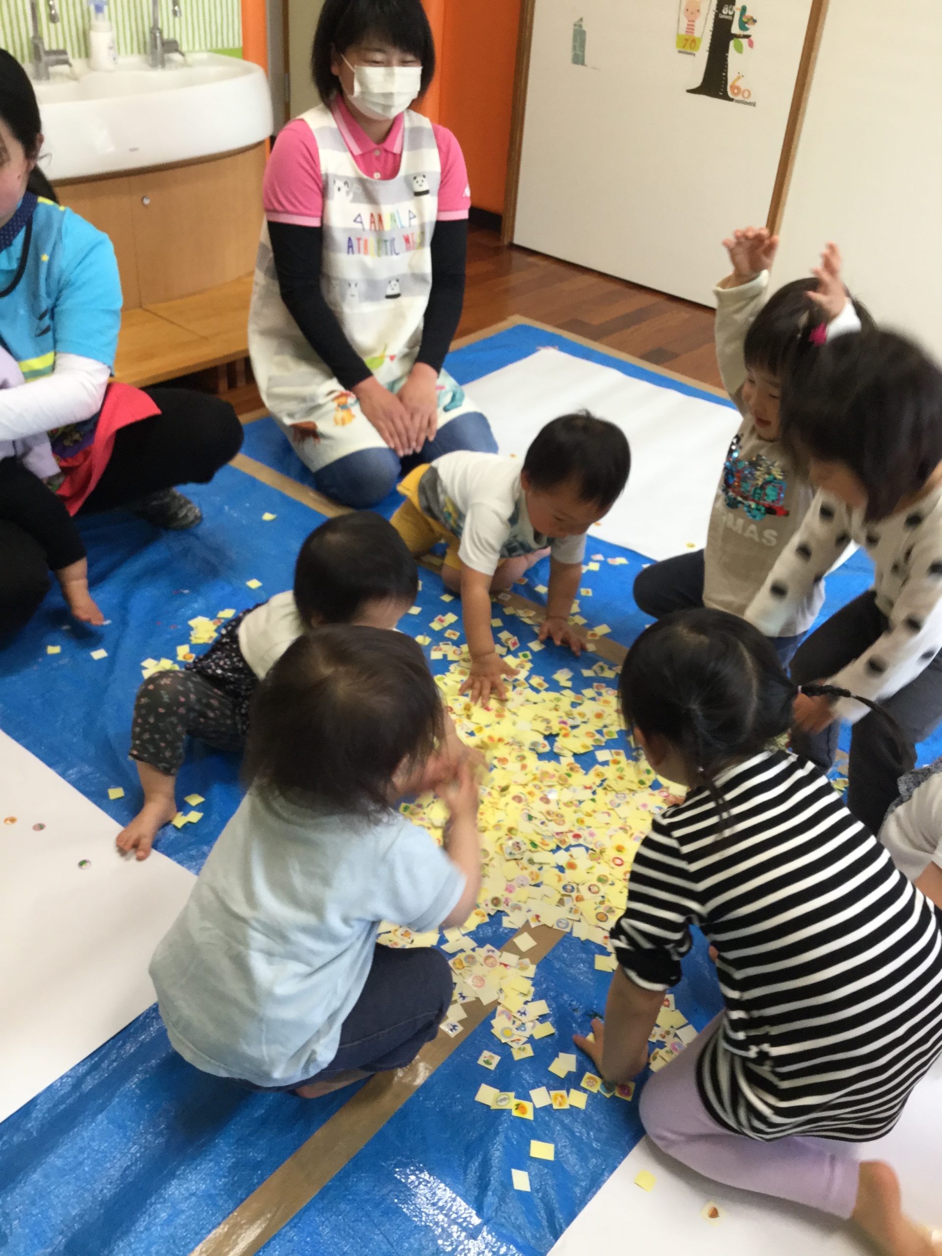 今日持ち帰りますので、ご家庭でも紙に貼ったり楽しんでみてください🎵