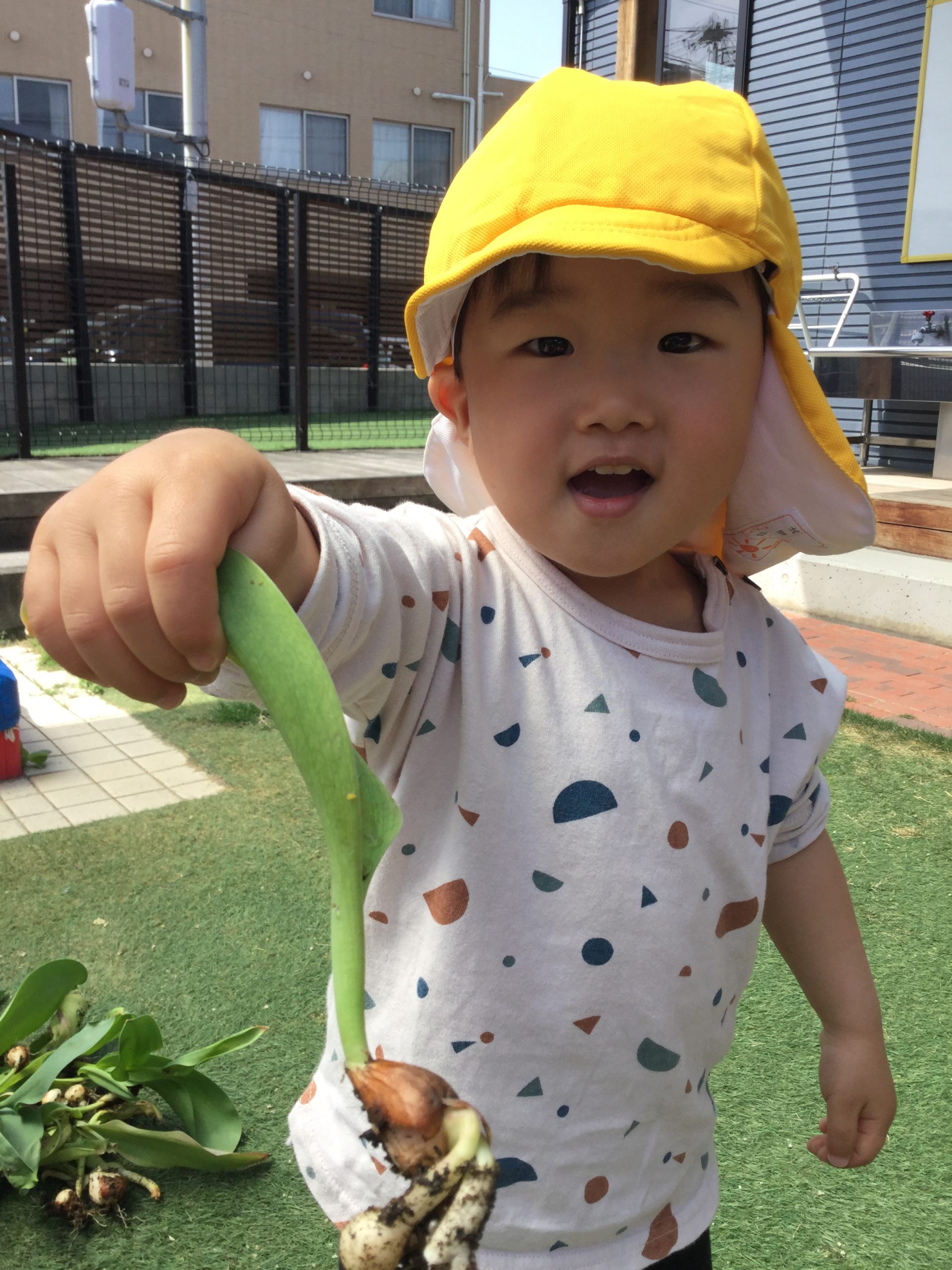 ひまわり組さんがチューリップの球根を引っこ抜いてくれました!