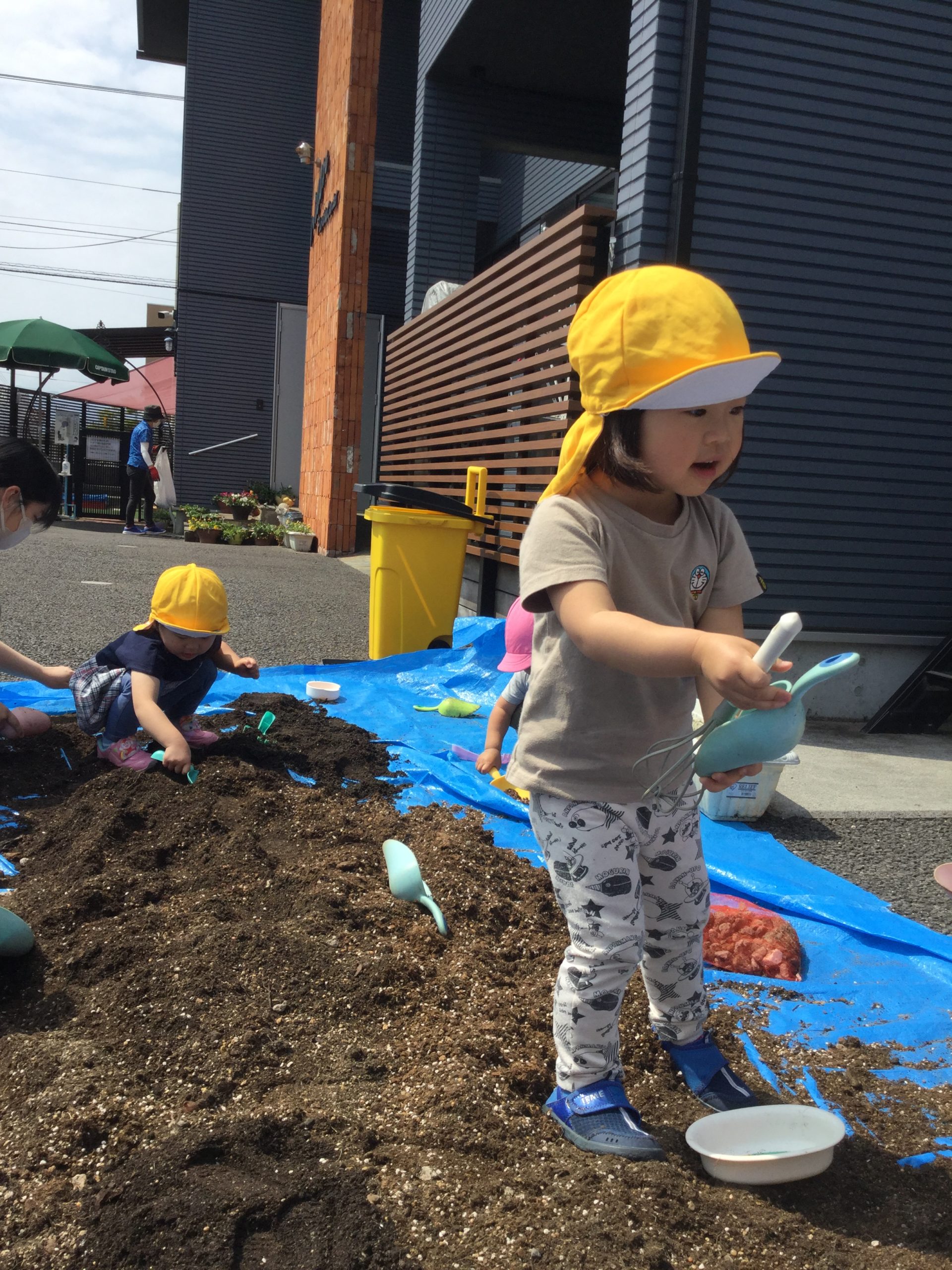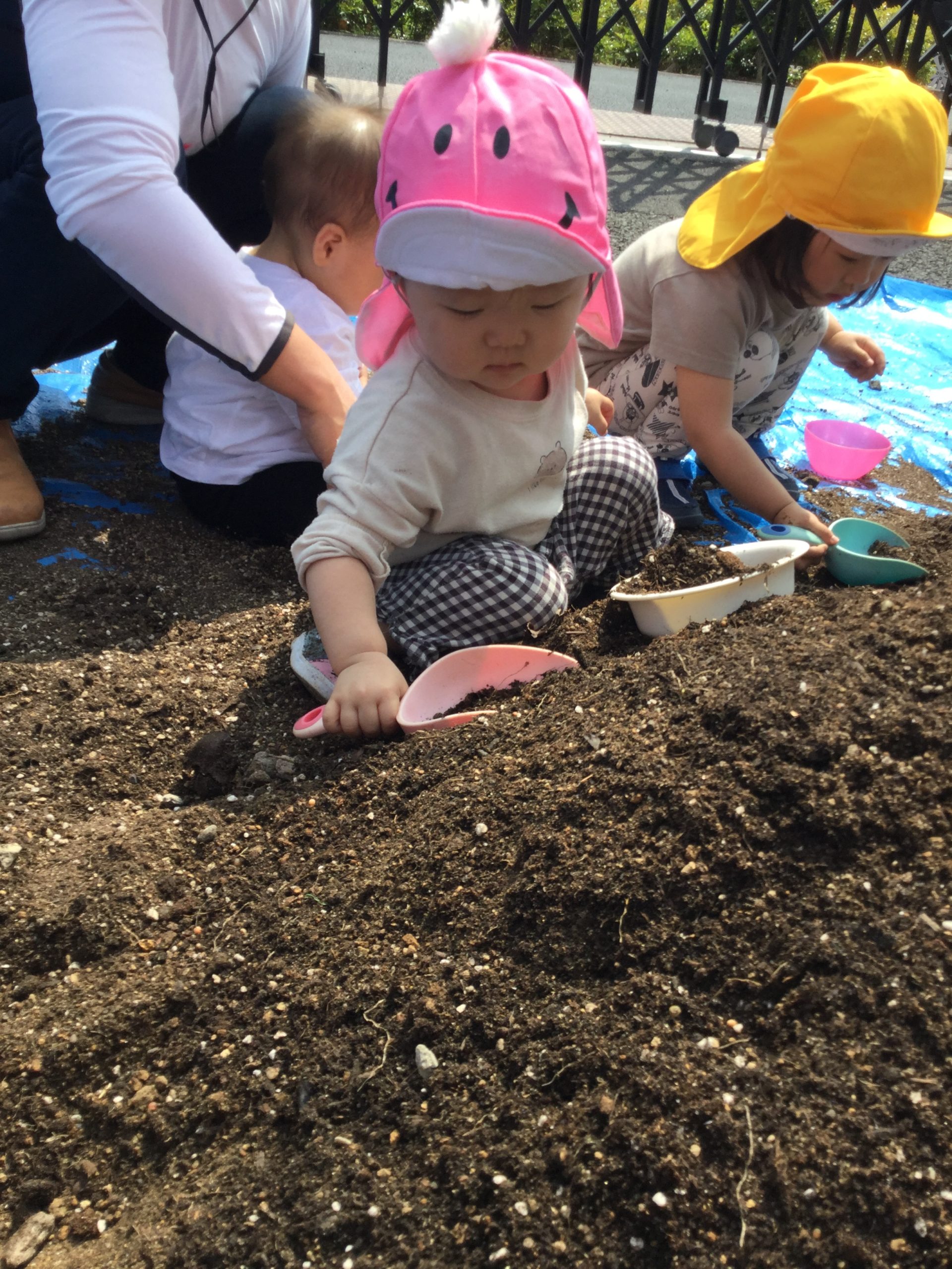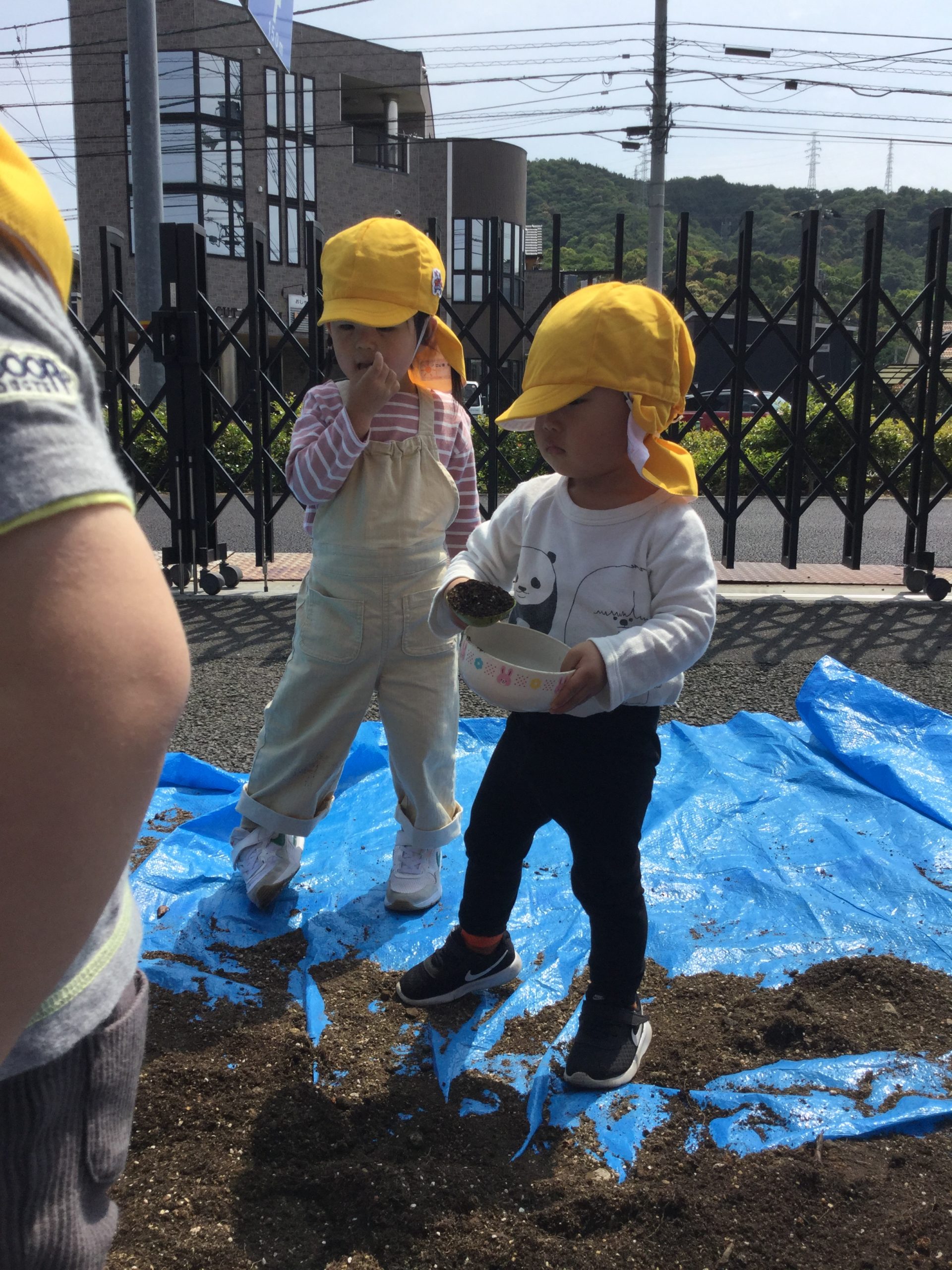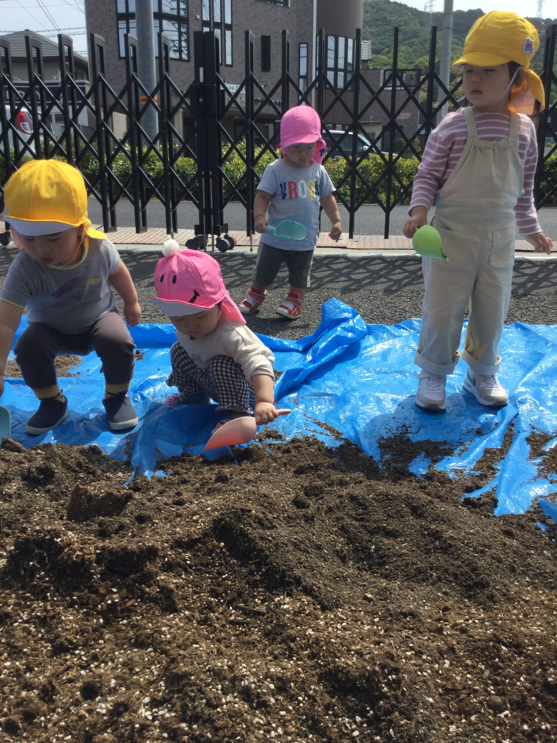 栄養のあるフカフカのおふとんを作るため、みんなが土を混ぜてくれました🌱