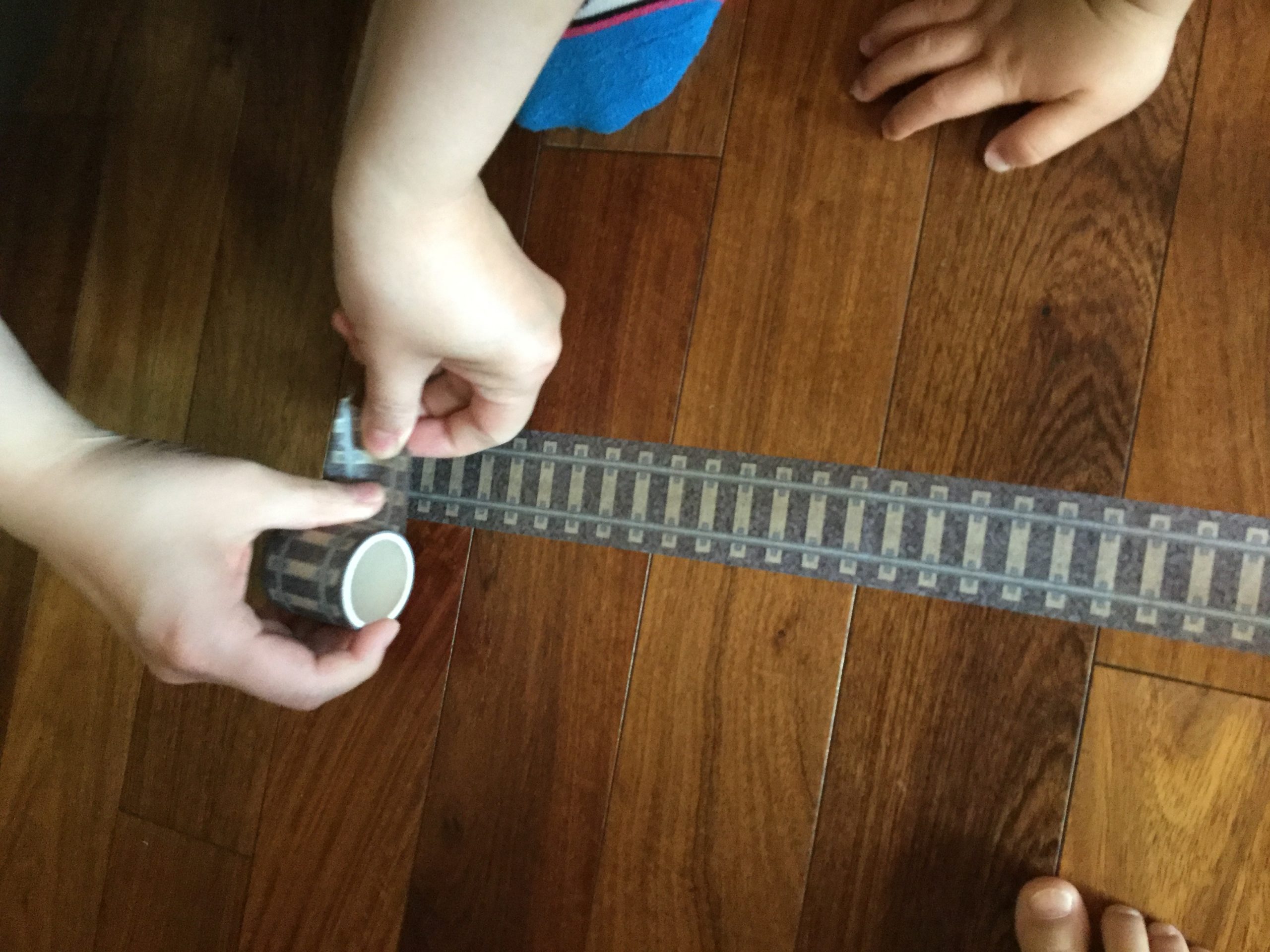 100円SHOPセ〇アで見つけた、線路の絵が描いてあるマスキングテープ🚆