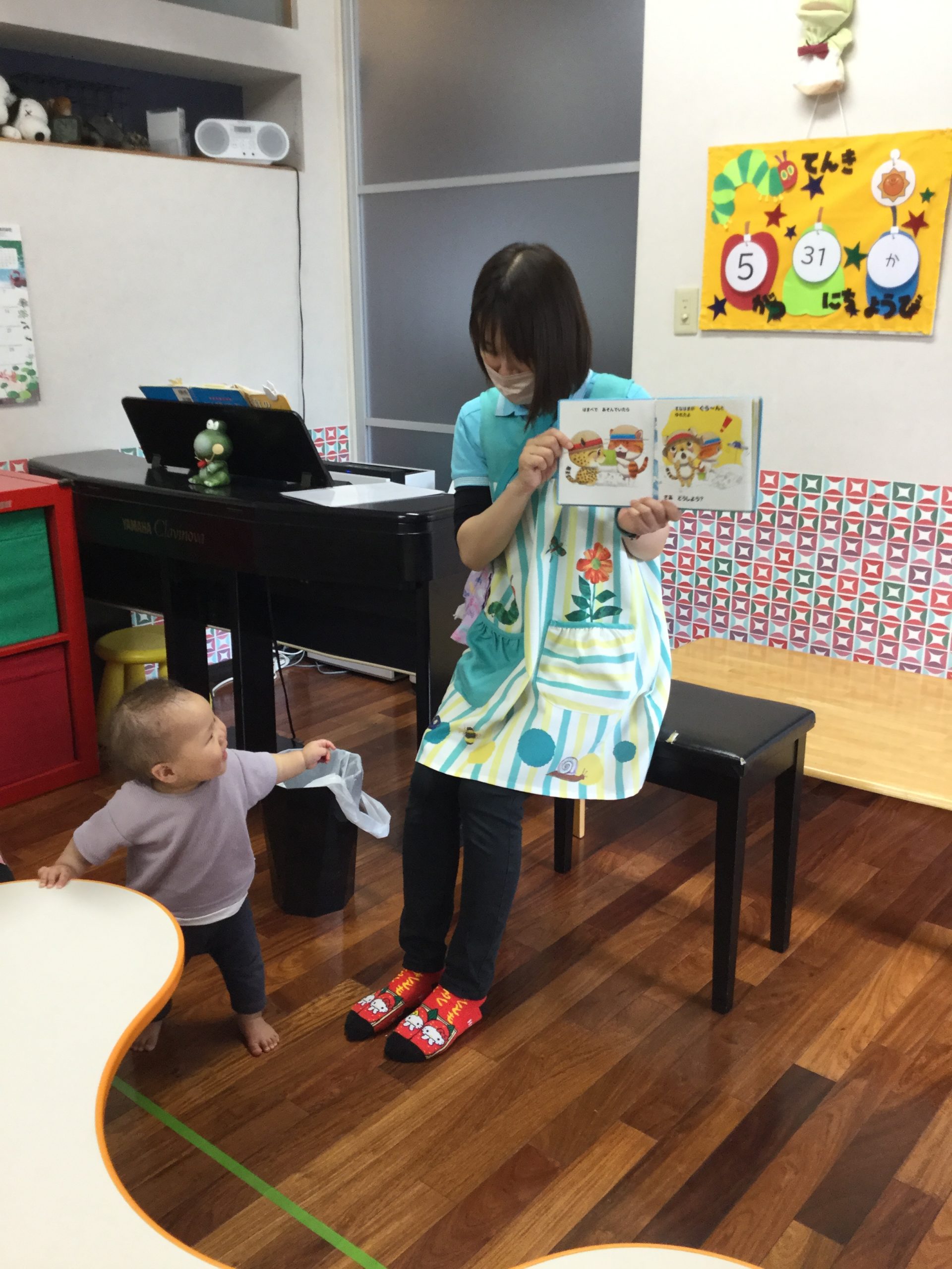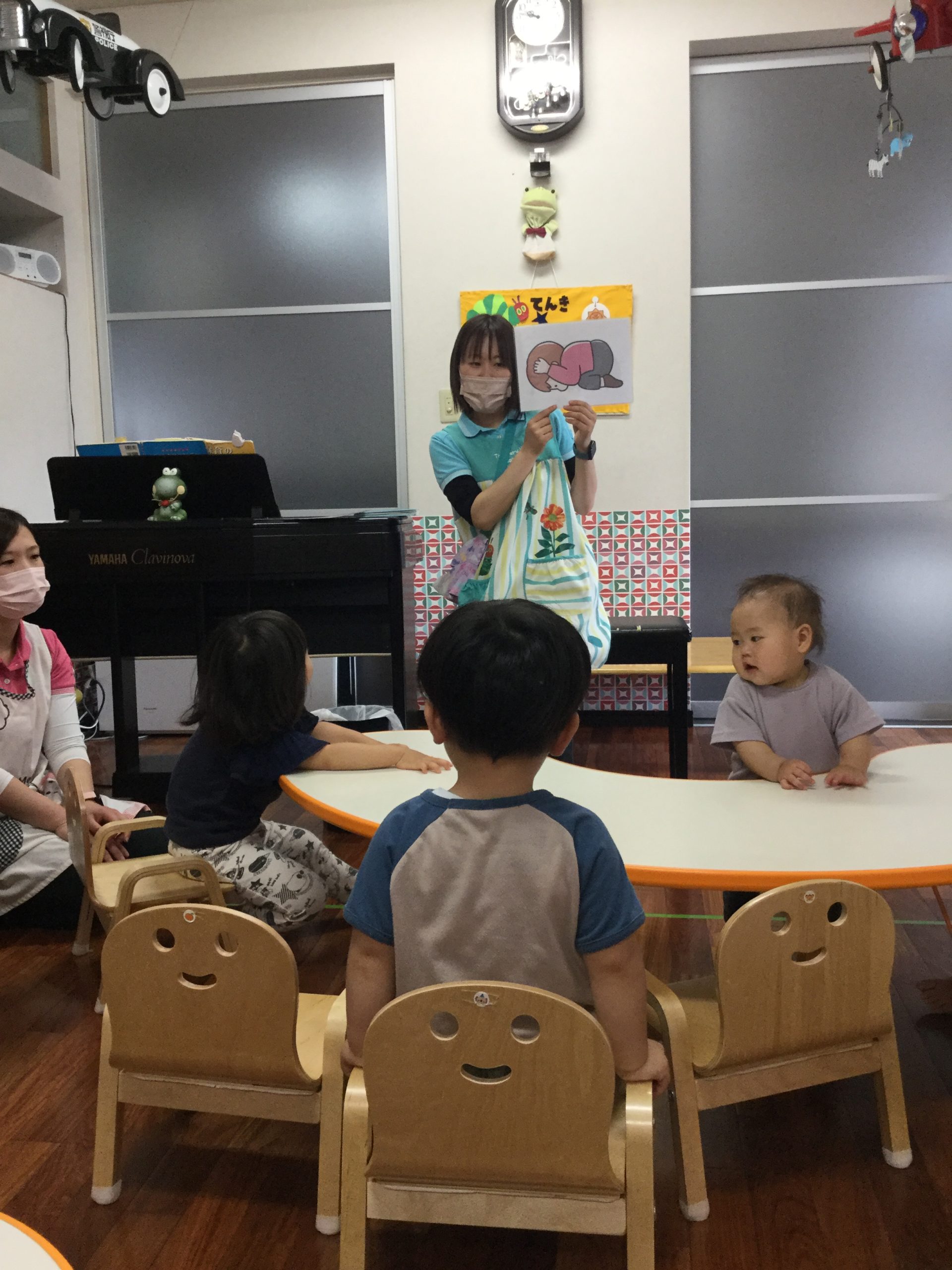 まりか先生から絵本で「だんごむしポーズ」の説明がありました。