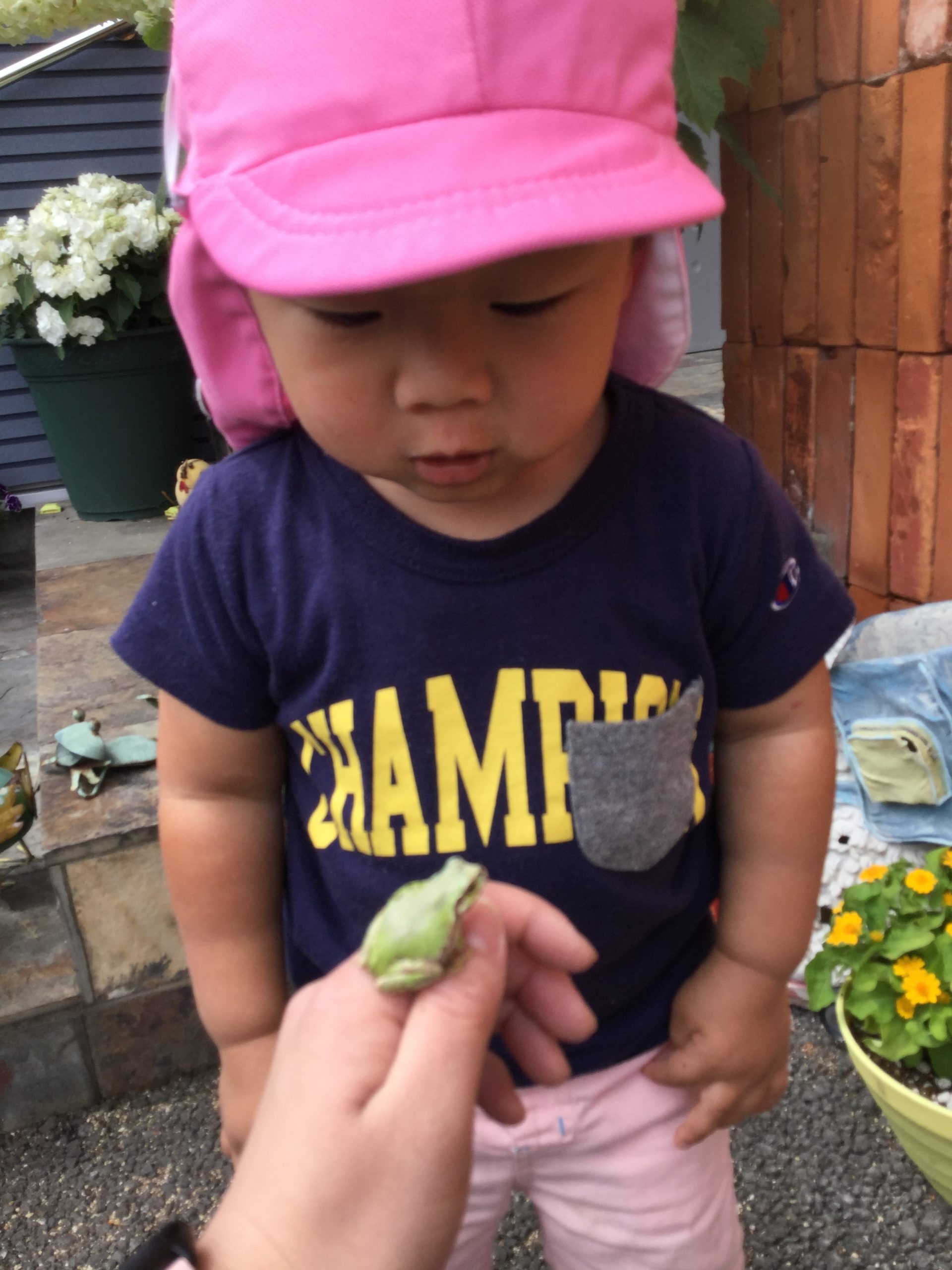 (カエルを触っても平気な)先生が捕まえて、みんなに見せてくれました🐸
