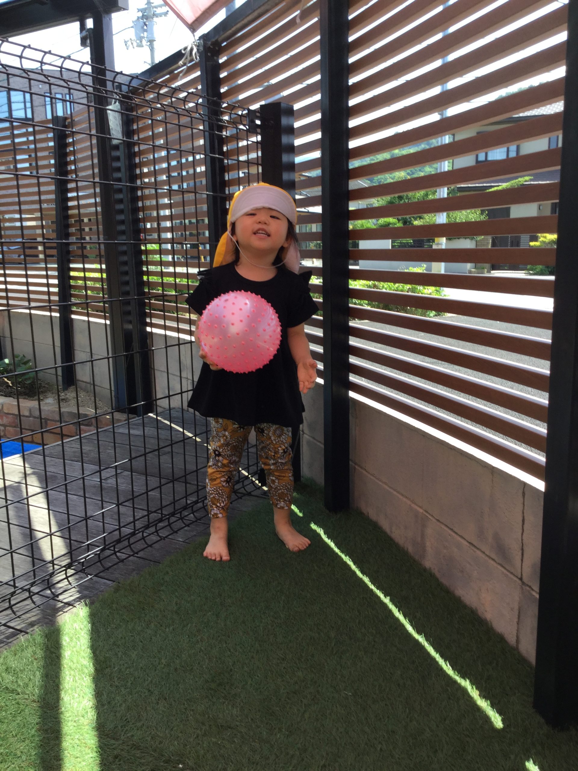 ひまわり組さん、中庭にちょっとだけのつもりで出てきたら、