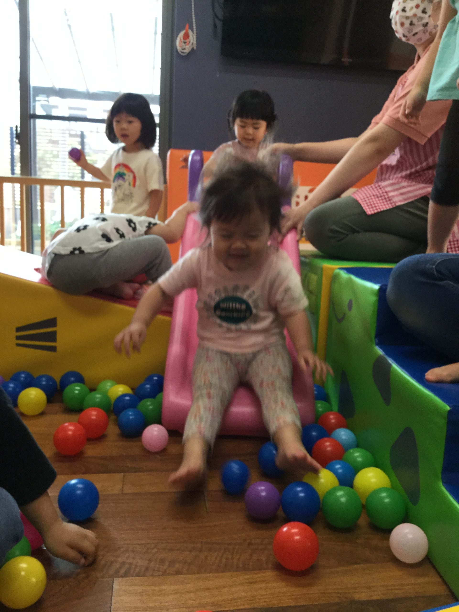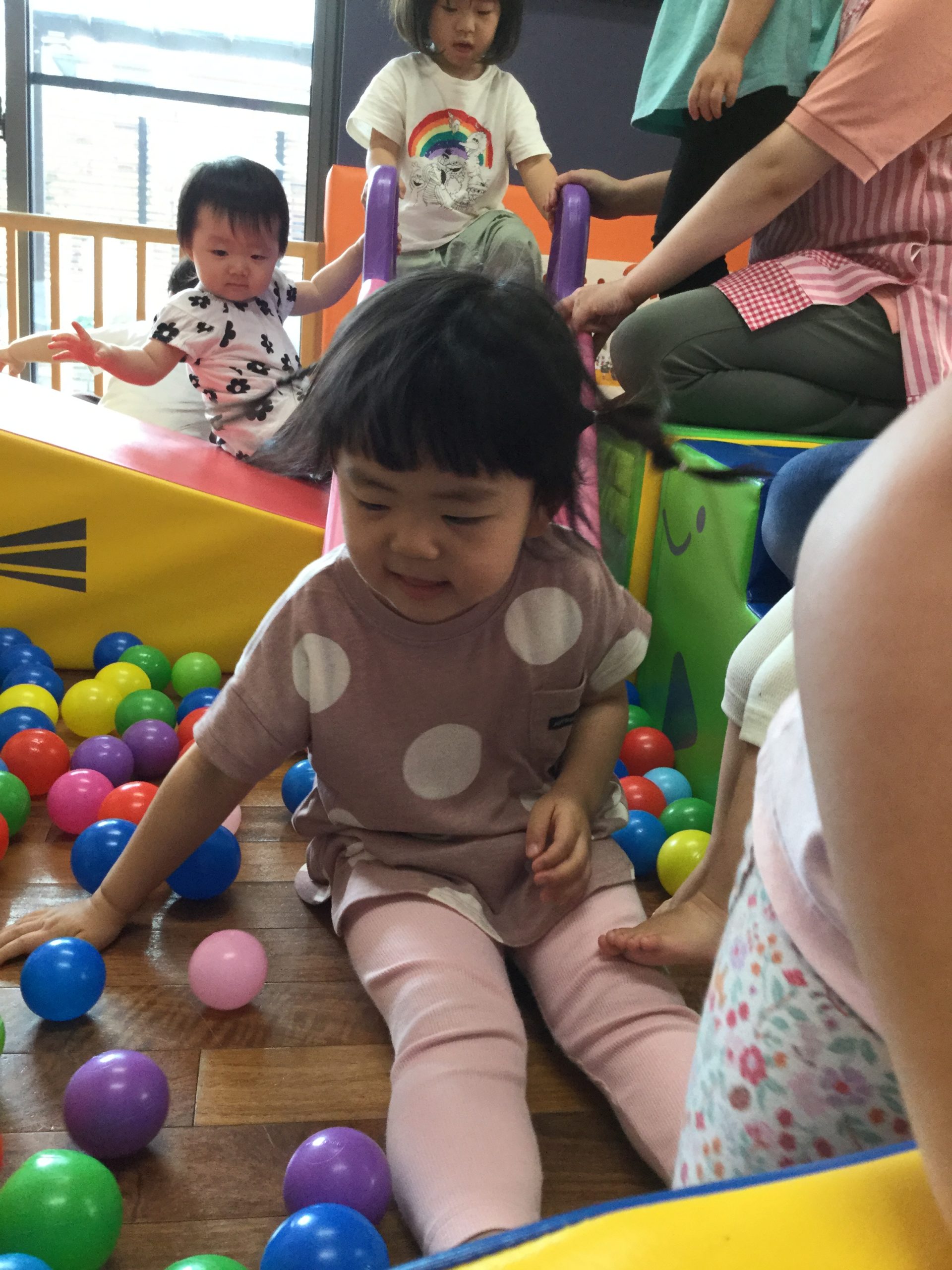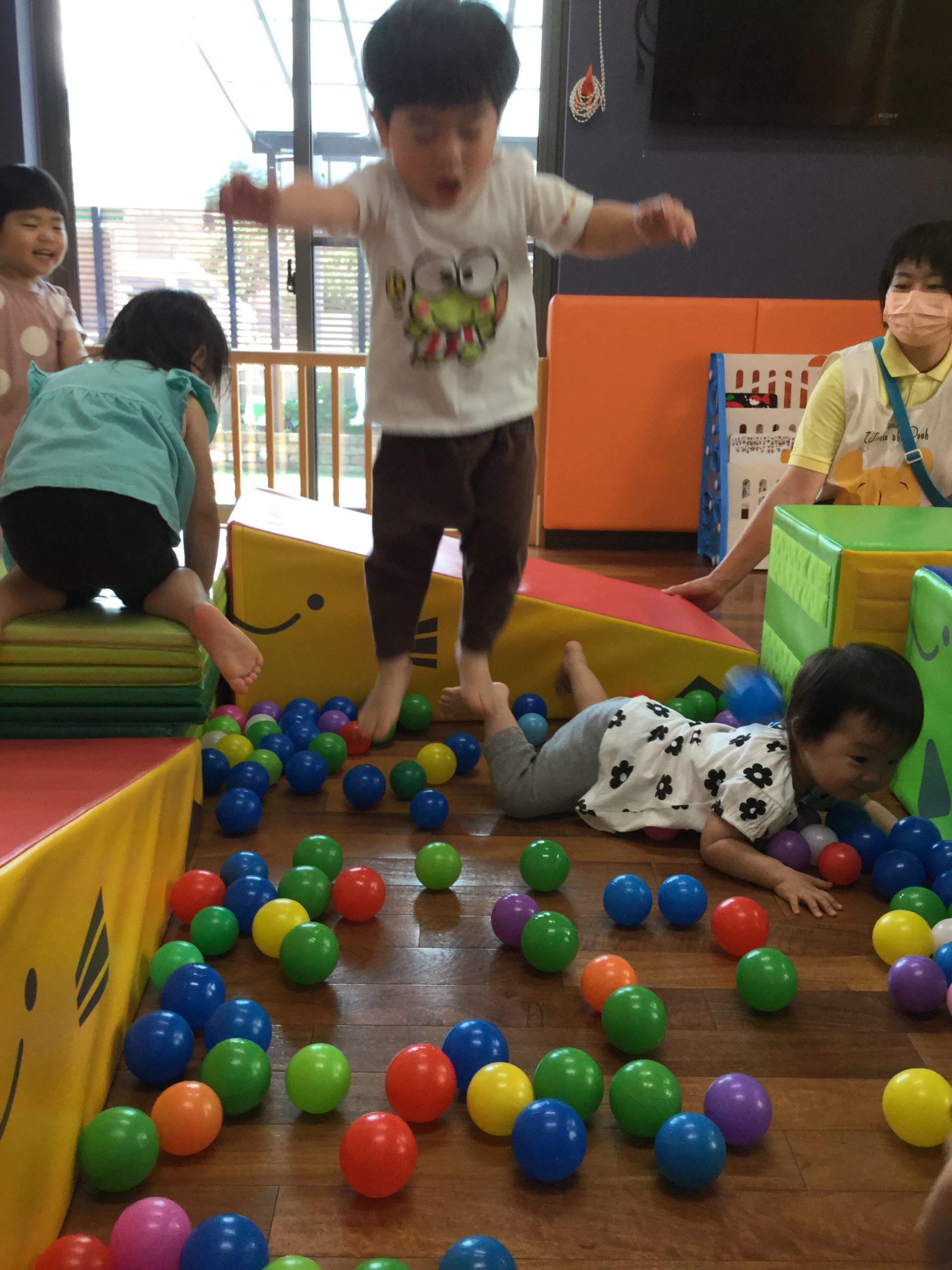 涼しいお部屋で、早くもリクエストのあったボールプールあそびをしました🥎