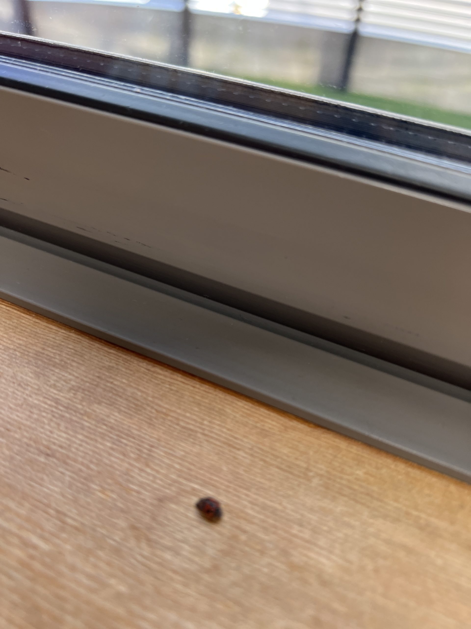 よくよく見てみると小さな小さな虫が窓際に!