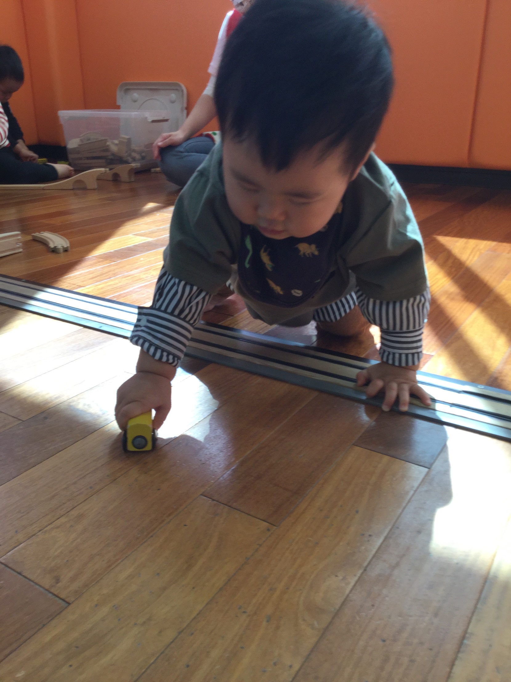 低年齢児さんも線路を作ったり、電車を自分で走らせたりして楽しんでいました🚆!