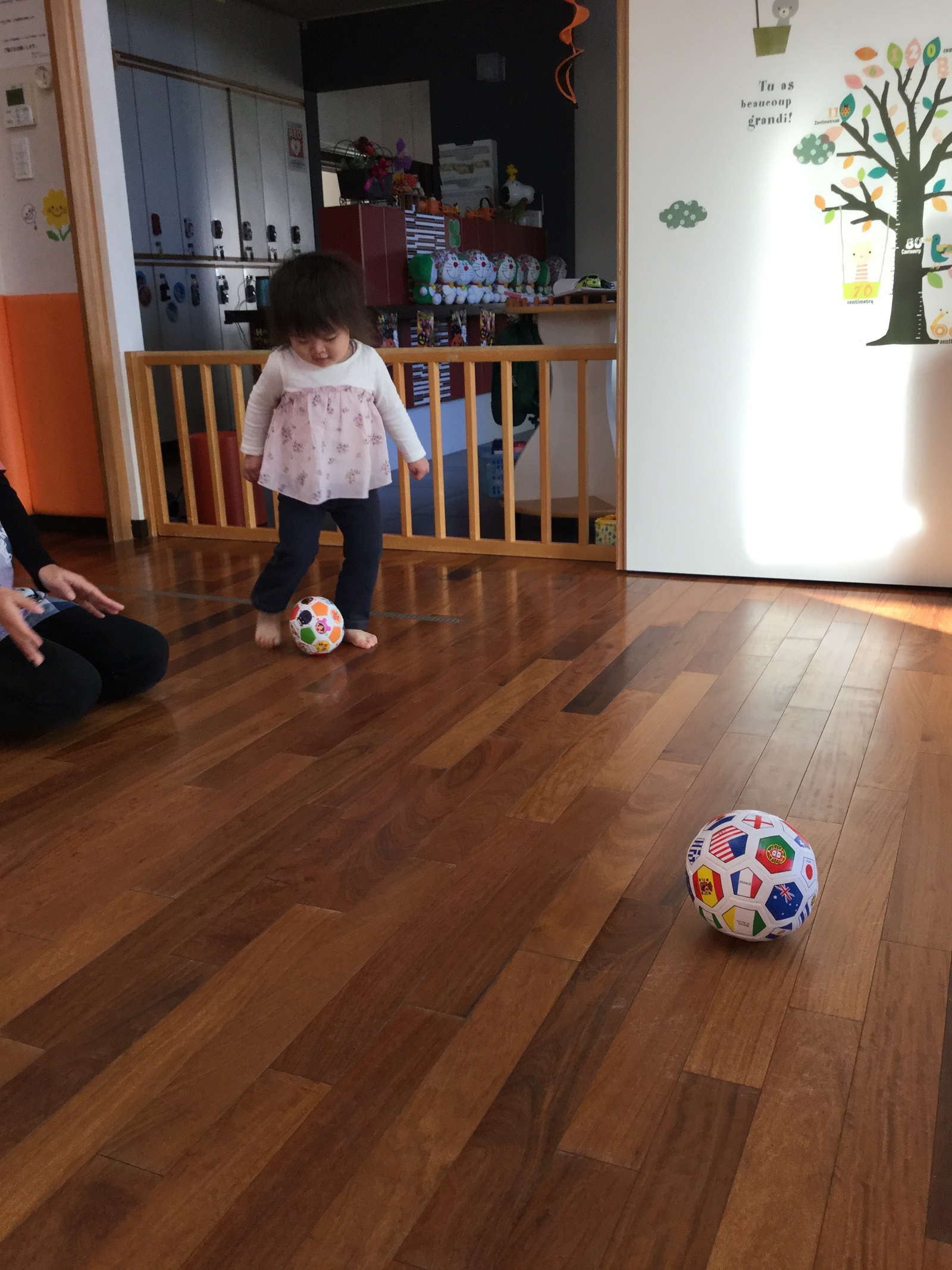 1歳くらいのお子さんは、最初は風船を足で転がしたりすることから始めても楽しいですね🌟