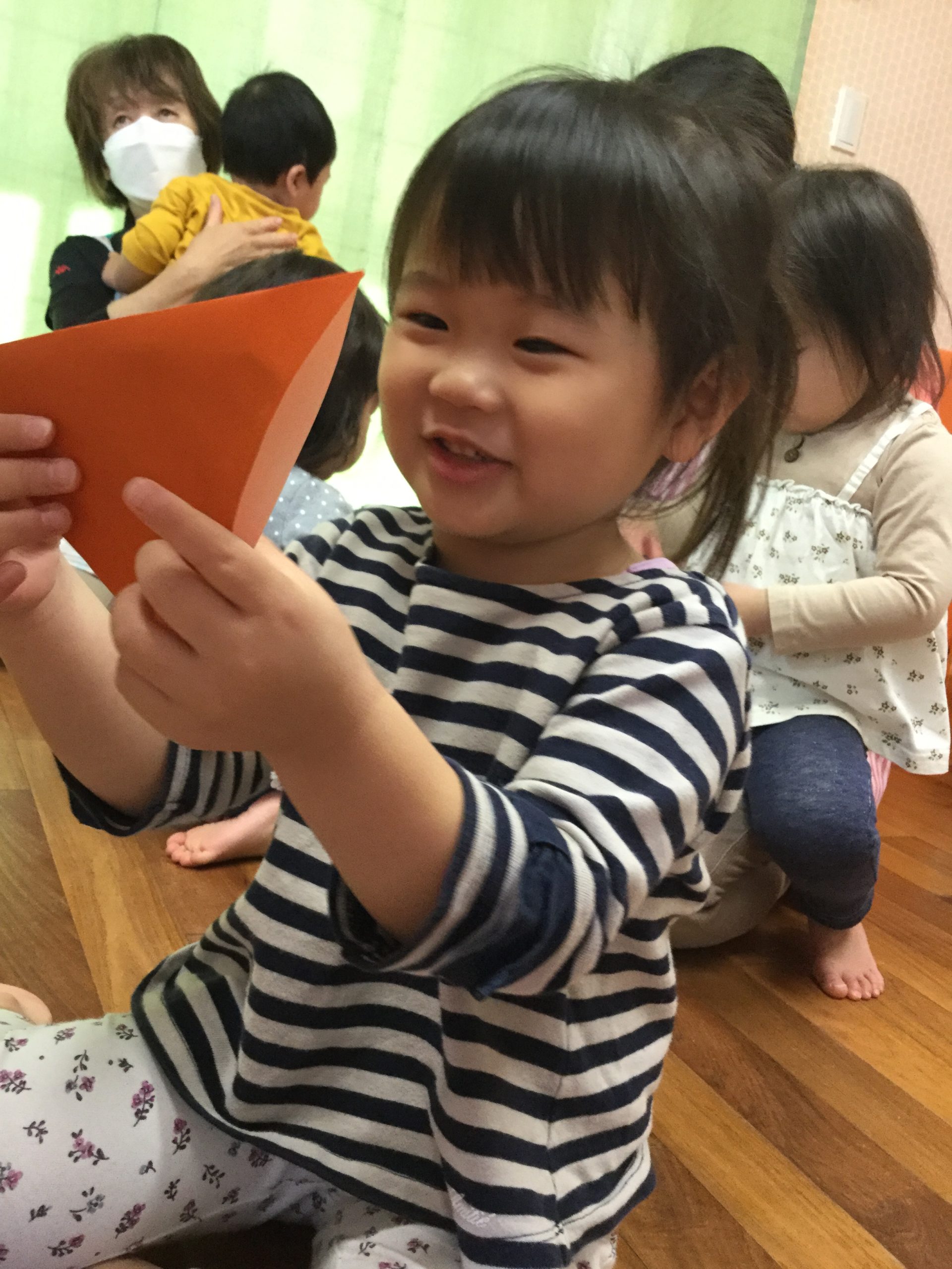 白い折り紙で『mushroom🍄』茶色い折り紙で『chestnut🌰』を作り、