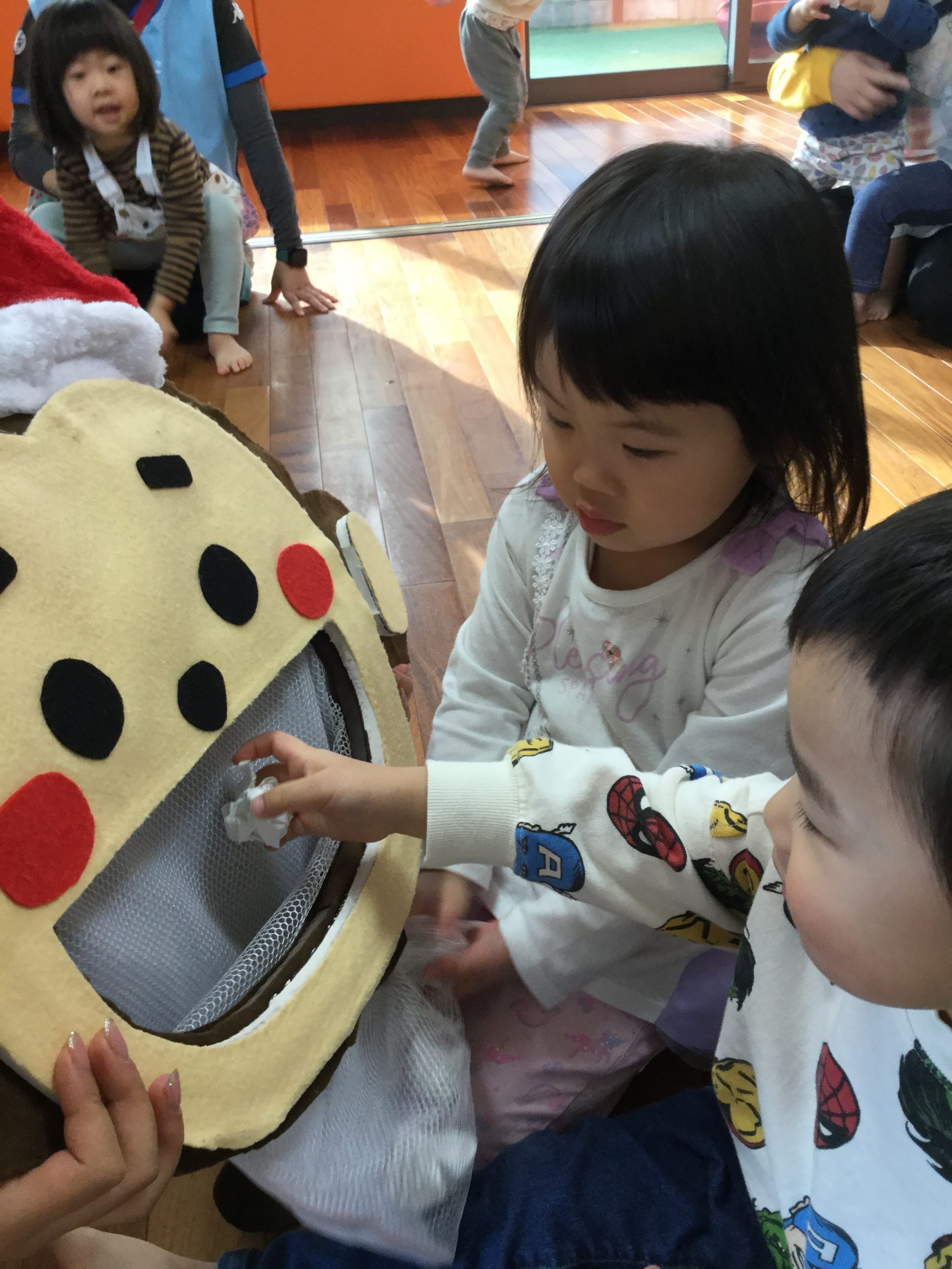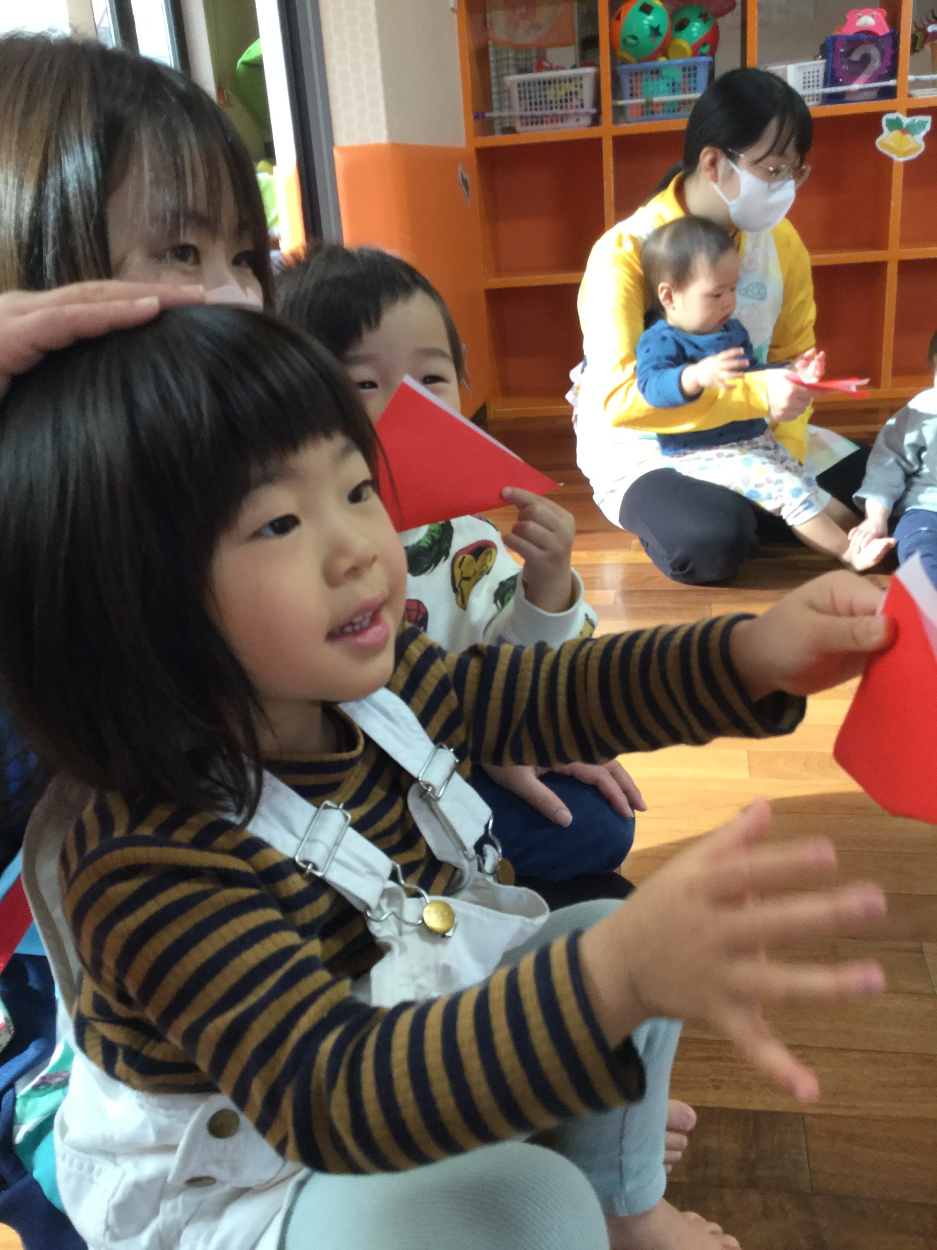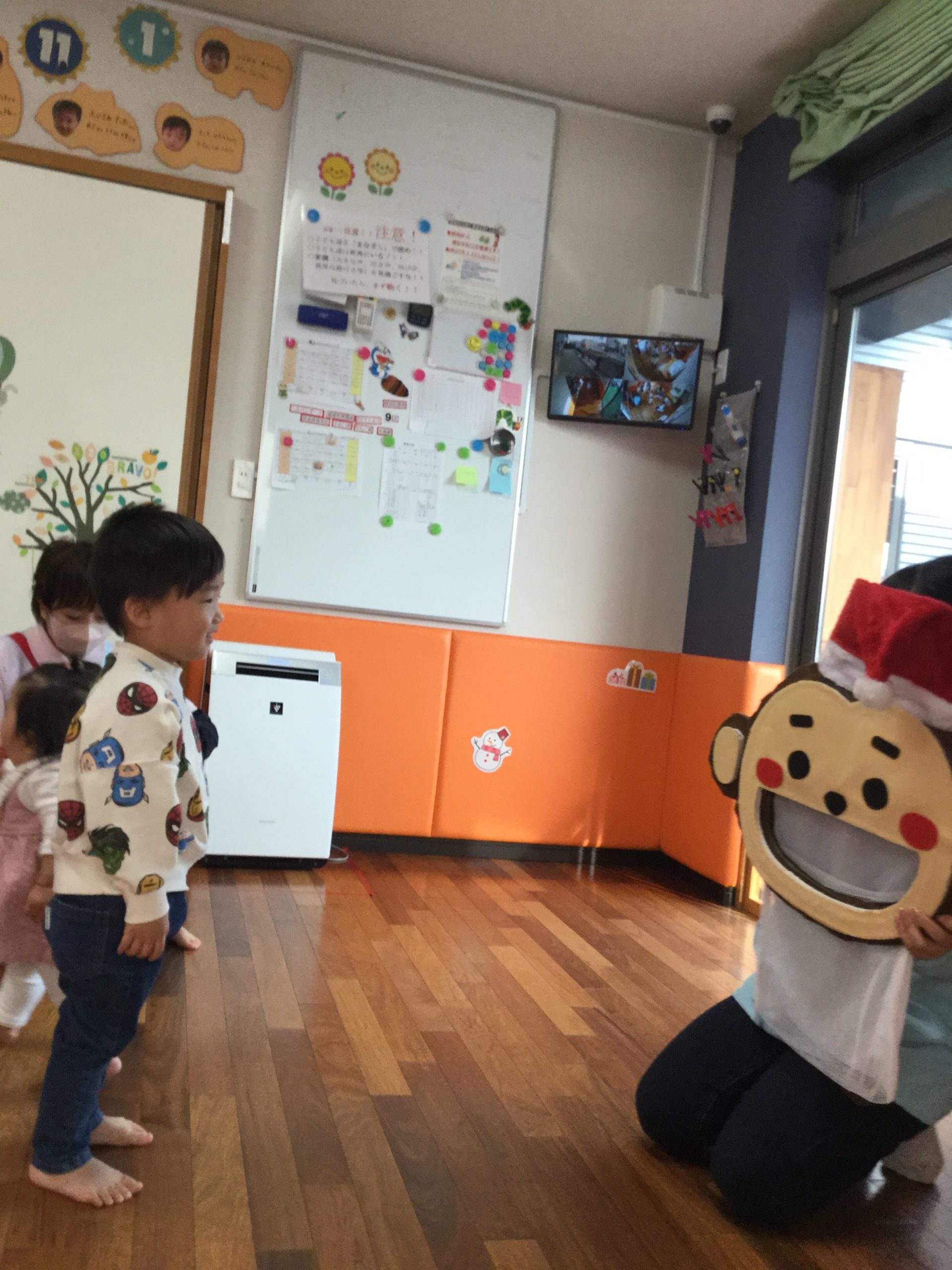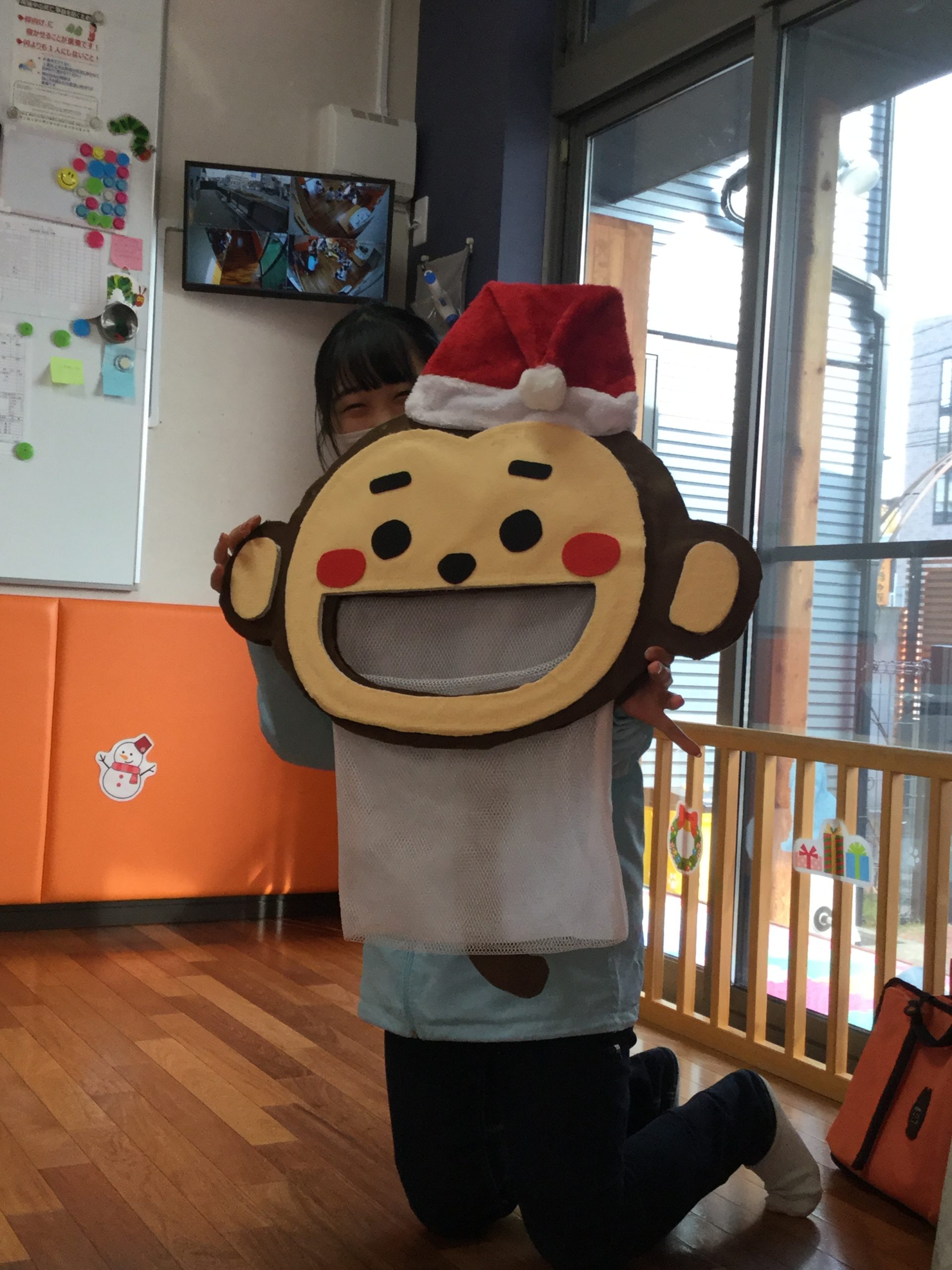 「あー!!クリスマスの帽子をかぶってる~!!」