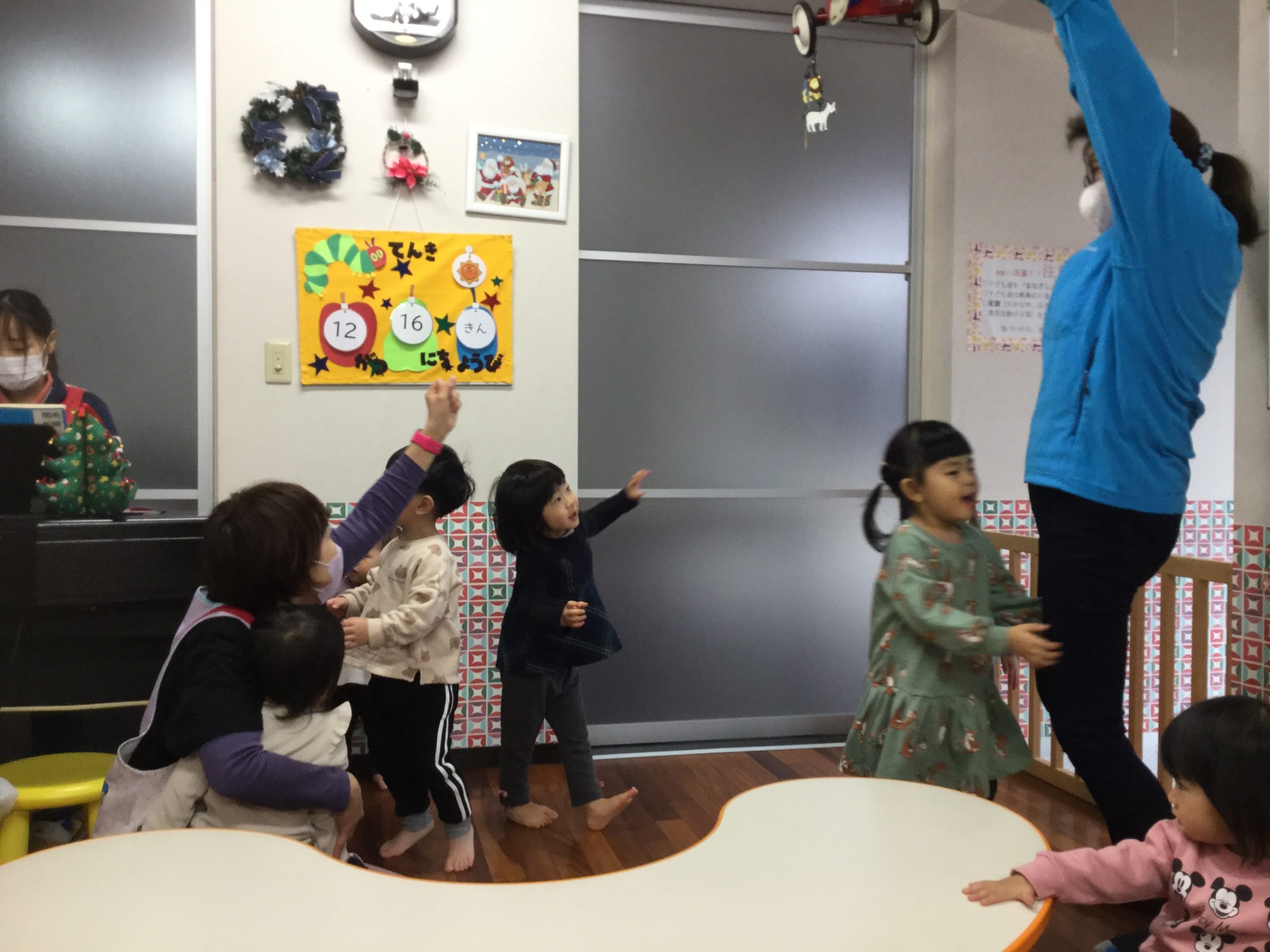 「みんないい子にしてるから、きっとサンタさんがくるねぇ~🎅」